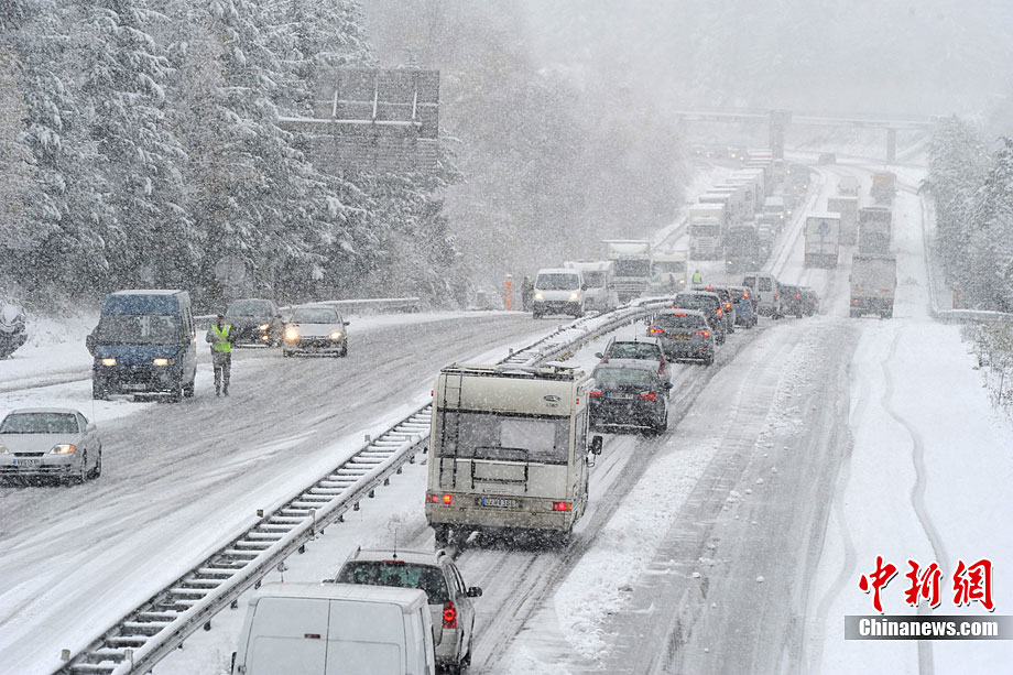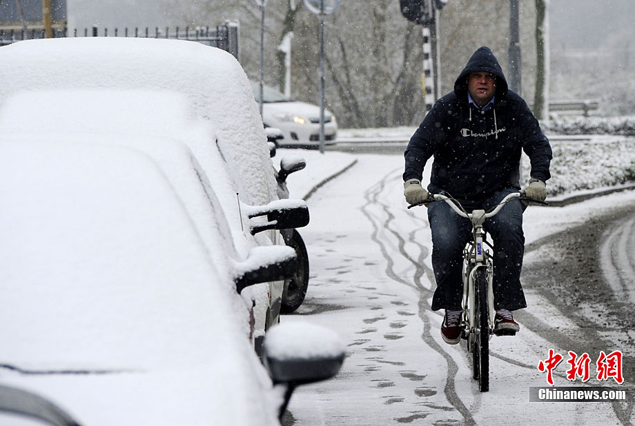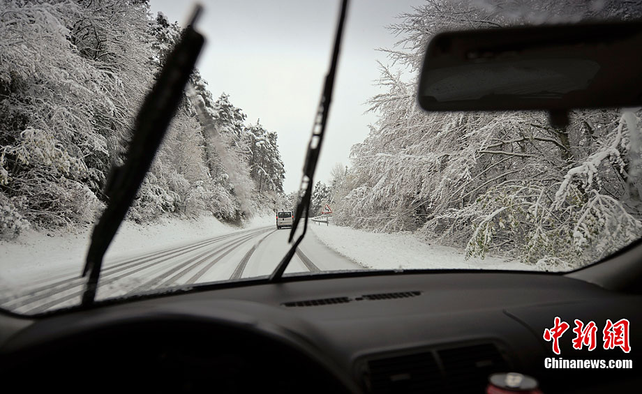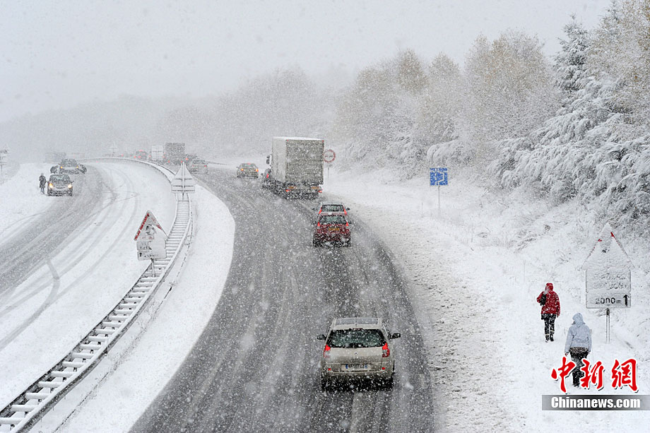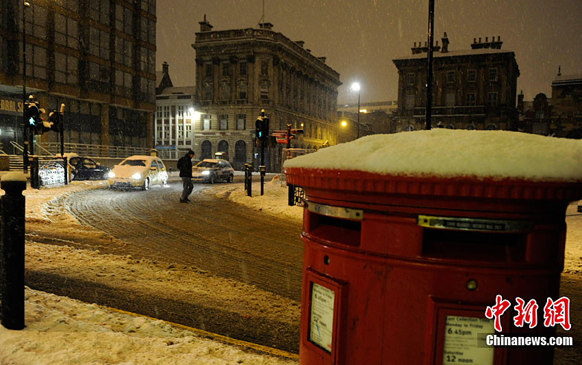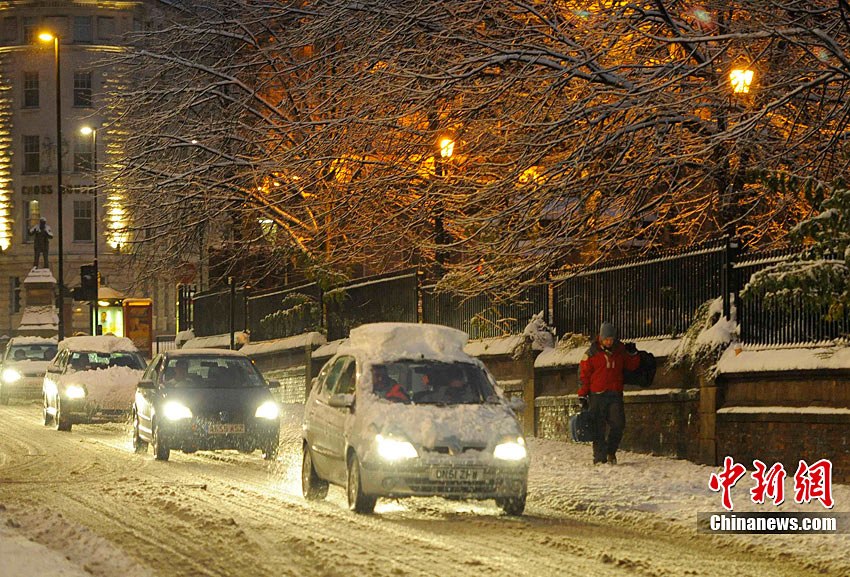 歐洲廣大地區(qū)受到嚴(yán)寒天氣侵襲,其中英國(guó)提早降下今冬第一場(chǎng)雪,是17年來(lái)最大的初雪,部分地區(qū)更刮起暴風(fēng)雪,最低氣溫達(dá)零下17攝氏度,居民生活和交通大受影響。法國(guó)、比利時(shí)、荷蘭、丹麥、德國(guó)、波蘭以至白俄羅斯均出現(xiàn)暴風(fēng)雪,預(yù)計(jì)西班牙北部也會(huì)下雪。圖為11月29日,英格蘭北部紐卡斯?fàn)枺囆旭傇诖笱└采w的道路上。