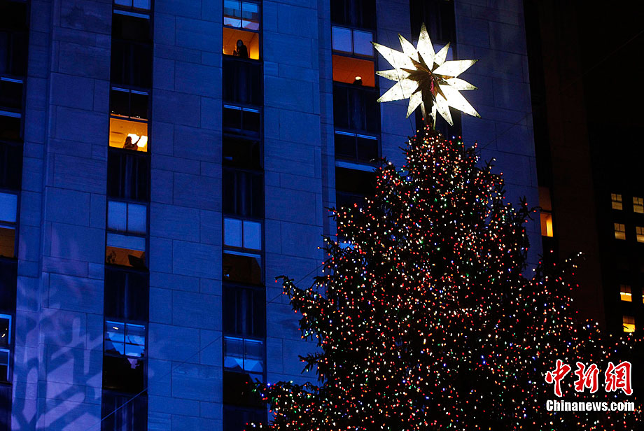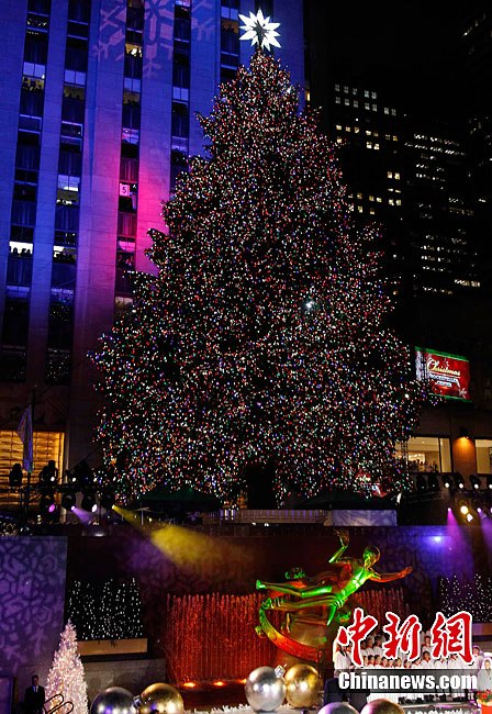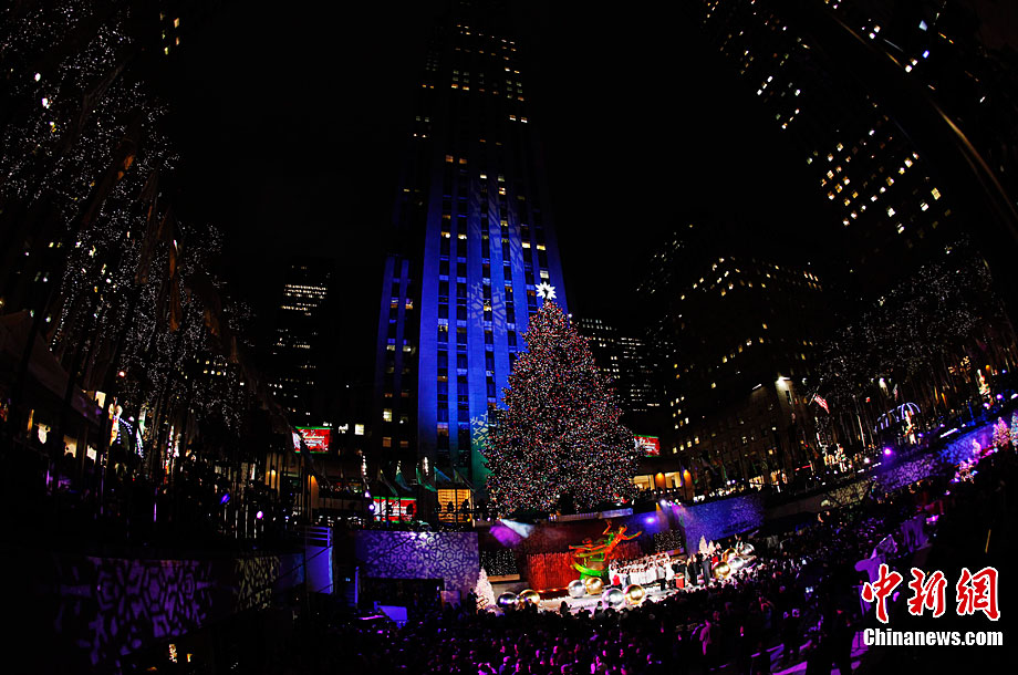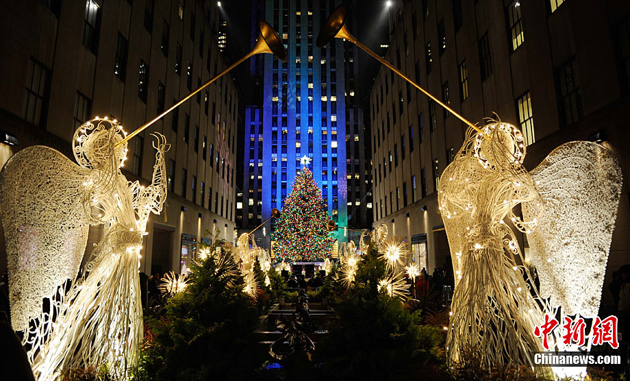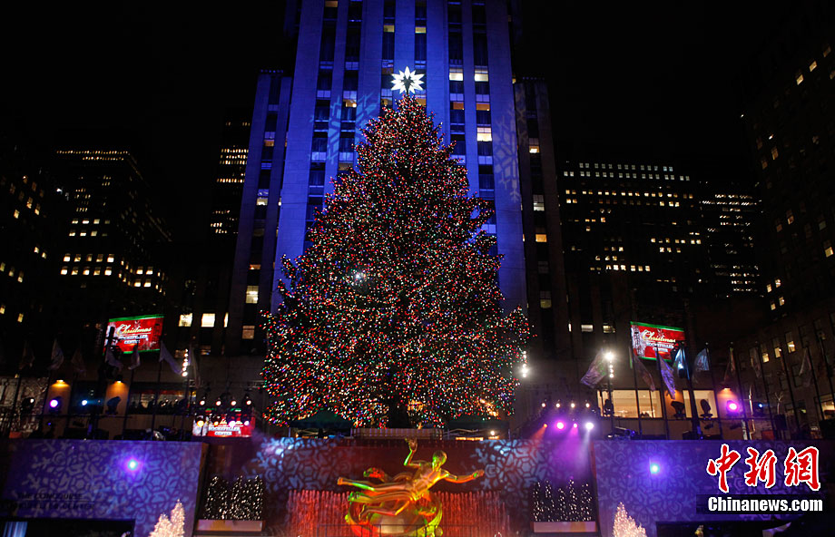 紐約洛克菲勒中心廣場(chǎng)圣誕樹(shù)正式點(diǎn)亮