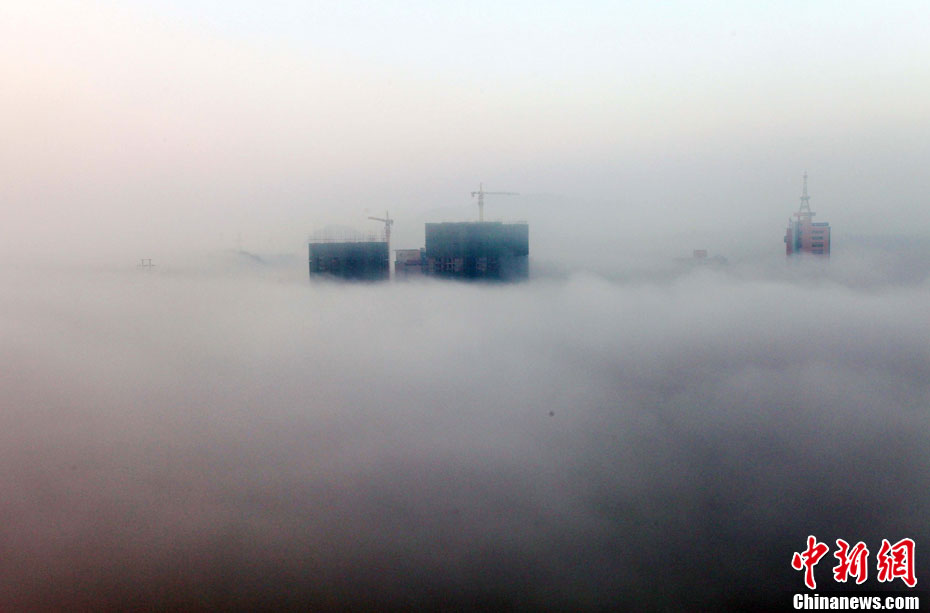 12月2日清晨,貴州省安順市出現(xiàn)平流霧奇觀,整個(gè)市區(qū)宛如仙境。 中新社發(fā) 盧維 攝 圖片來源:cnsphoto