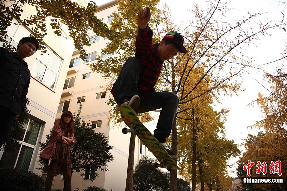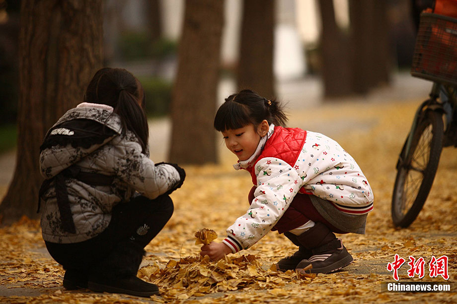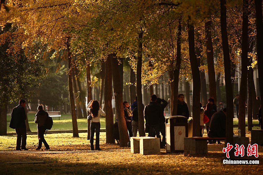 銀杏樹作為成都市的市樹,每年11月底到12月初是市民觀賞銀杏的最佳時(shí)期,面對市民發(fā)出的“保留銀杏落葉景觀”呼聲,成都市環(huán)衛(wèi)部門于2009年對部分街道的銀杏落葉首次采取“只撿不掃”的措施,2010年,成都環(huán)衛(wèi)部門繼續(xù)采用了這一人性化措施,將銀杏落葉景觀長時(shí)間留給市民。中新社發(fā) 張浪 攝