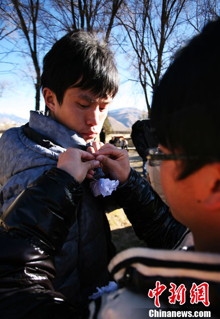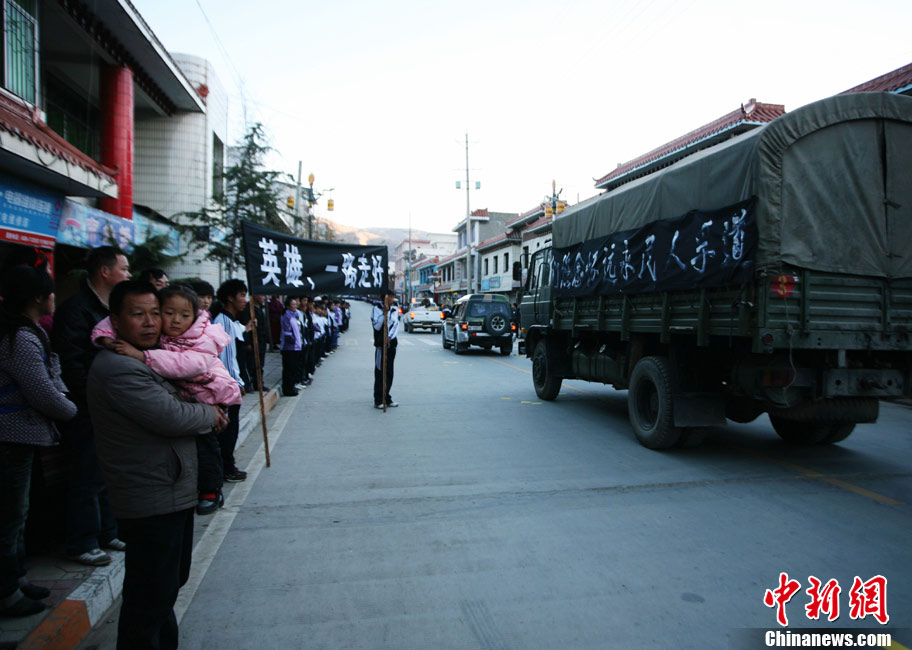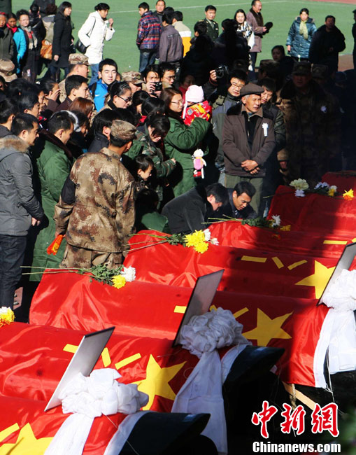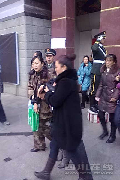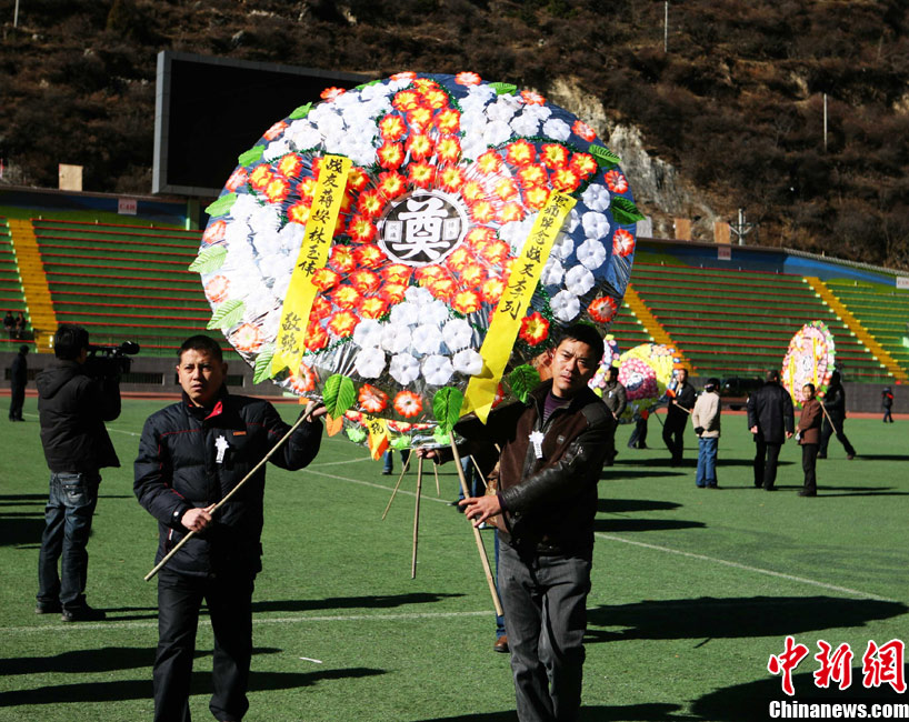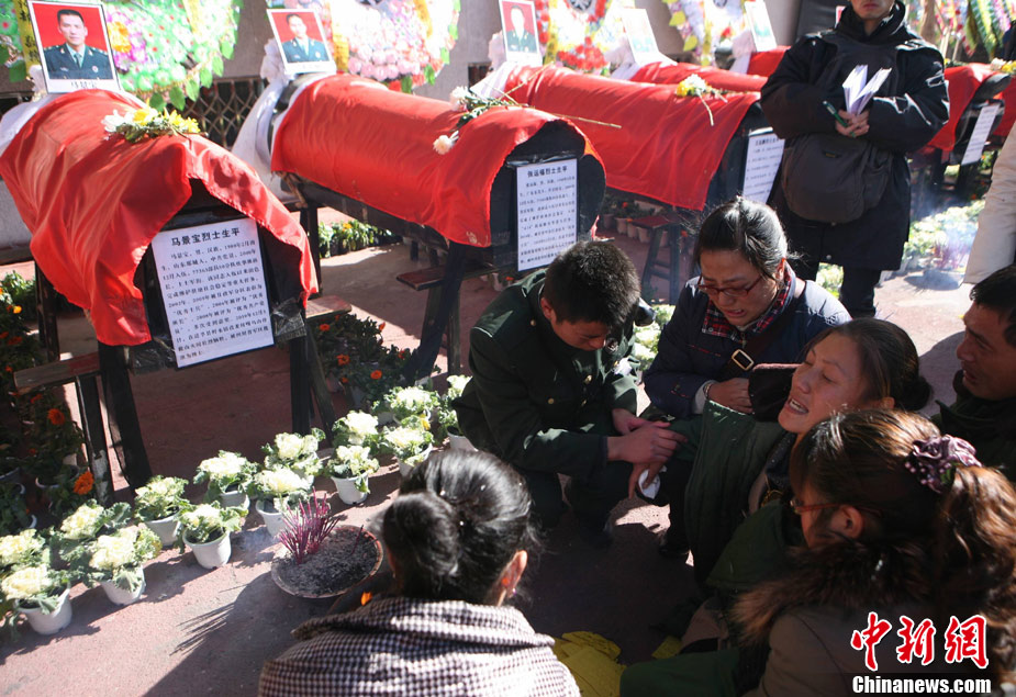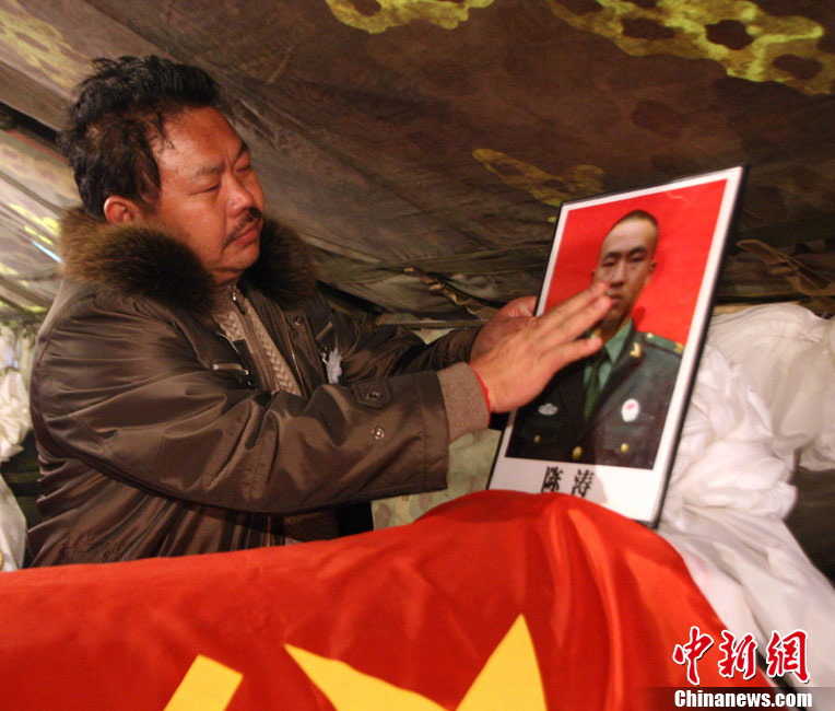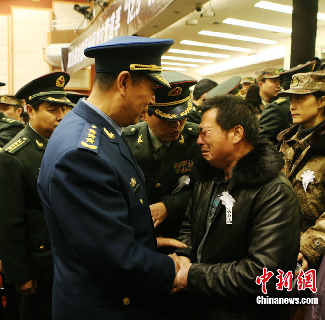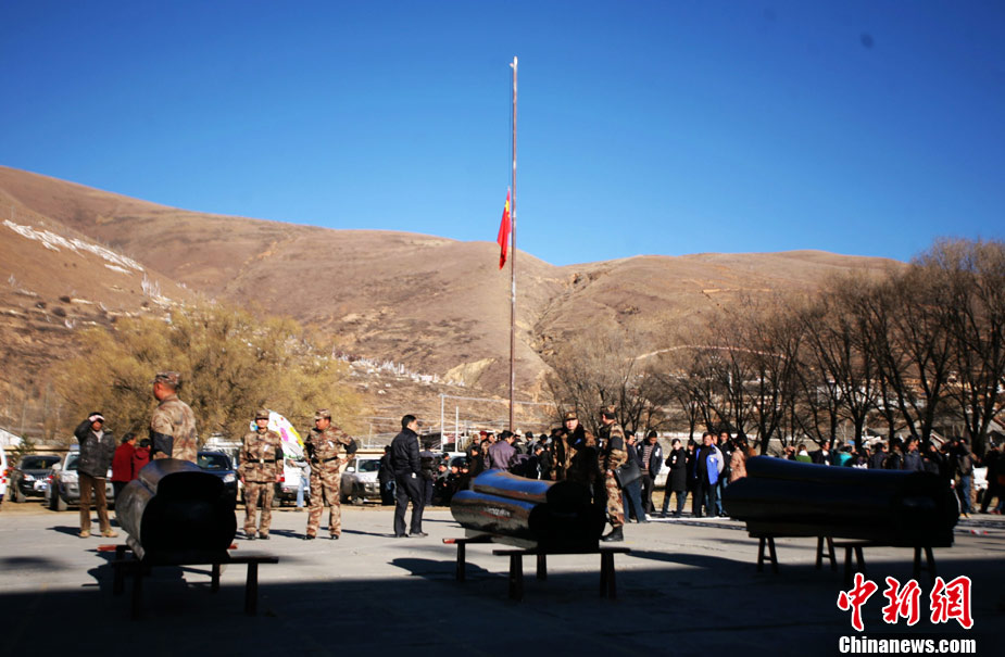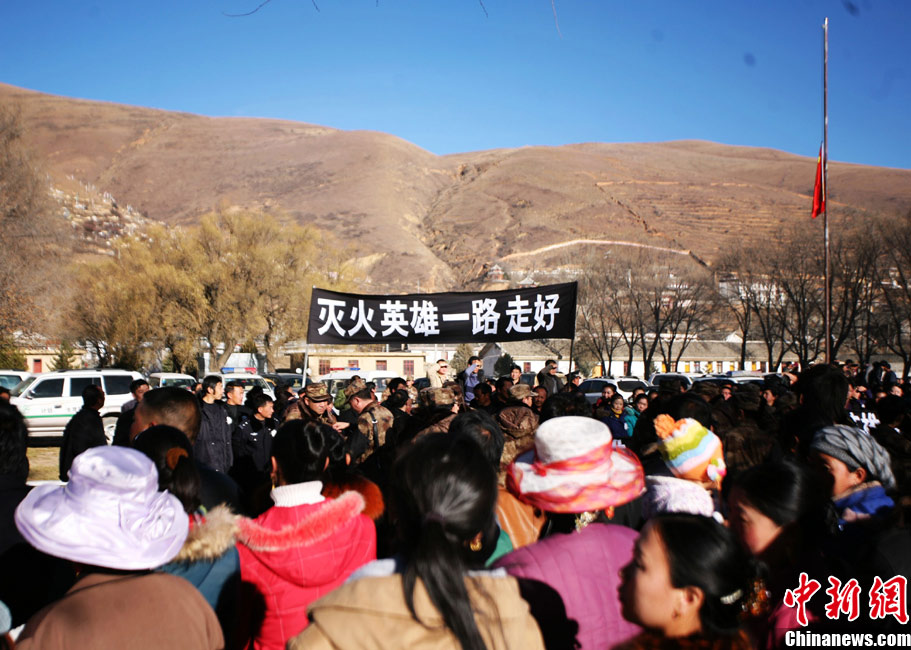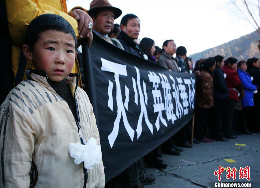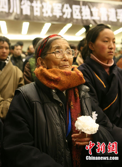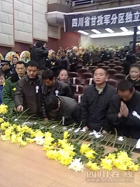 12月8日,四川省甘孜軍分區(qū)獨立營道孚“12·5”撲滅山火犧牲烈士遺體告別儀式在康定體育館舉行。圖為一位老人前來送別。中新社發(fā) 劉忠俊 攝