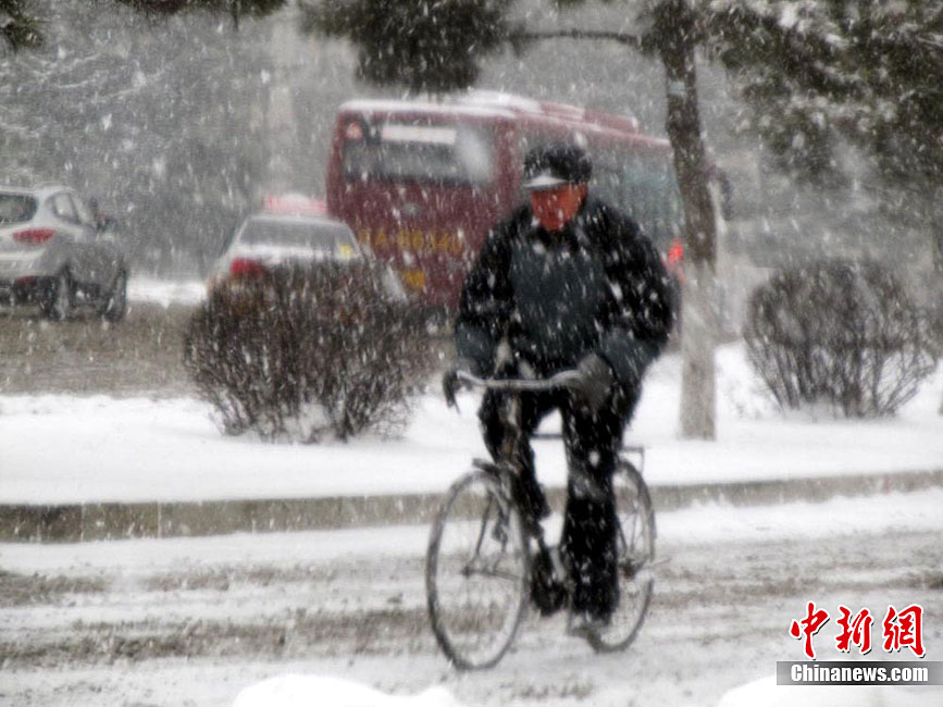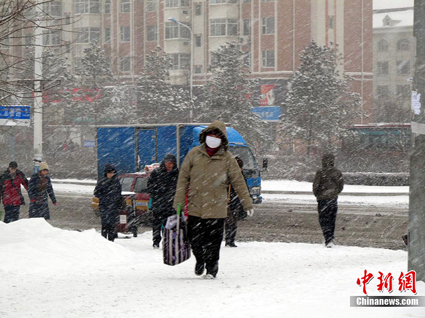 12月10日上午,長春街頭市民冒雪出行。從9日下午開始,吉林省遭遇大到暴雪,截至10日上午8時(shí),長春市農(nóng)安縣降雪量最大,達(dá)到9.1毫米,雪深達(dá)12厘米。據(jù)悉,大雪致使長春龍嘉國際機(jī)場兩度關(guān)閉,共有9個(gè)進(jìn)出港航班取消,千余名旅客滯留機(jī)場。中央氣象臺(tái)12月10日6時(shí)繼續(xù)發(fā)布暴雪藍(lán)色預(yù)警:12月10日08時(shí)至11日08時(shí),遼寧東北部、吉林中東部、黑龍江大部等地有大雪(5~9毫米),其中,遼寧東北部的局地、吉林中東部偏北地區(qū)、黑龍江中東部偏南地區(qū)等地有暴雪(10~15毫米)。中新社發(fā) 李彥國 攝