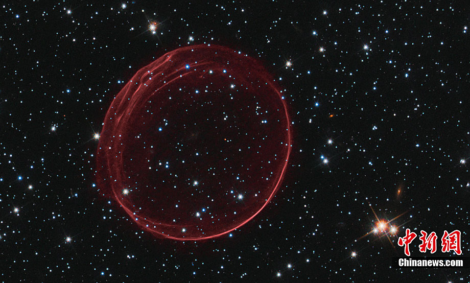 近日,美國哈勃太空望遠(yuǎn)鏡拍攝到了美麗的星系間“圣誕大氣泡”的照片。這個“圣誕大氣泡”是由400年前發(fā)生的超新星爆炸的殘骸形成的,它像一個精致的“殼”一樣漂浮在太空中。據(jù)悉,這個“圣誕大氣泡”是我們的臨近星系——大麥哲倫星云(Large Magellanic Cloud)中的一顆超新星在爆炸時發(fā)出的沖擊波及其噴射出來的物質(zhì) ,大麥哲倫星云與地球的距離為16萬光年?茖W(xué)家們將這個“圣誕大氣泡”氣圈命名為“SNR B0509-67.5”或者縮寫成“SNR 0509”。據(jù)悉,這個如氣泡狀的氣圈的直徑為23光年,并且正在以超過1100萬千米每小時的速度擴(kuò)散。另外,哈勃太空望遠(yuǎn)鏡拍攝到了“圣誕大氣泡”處于各種不同情況下的照片。