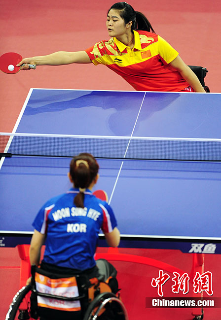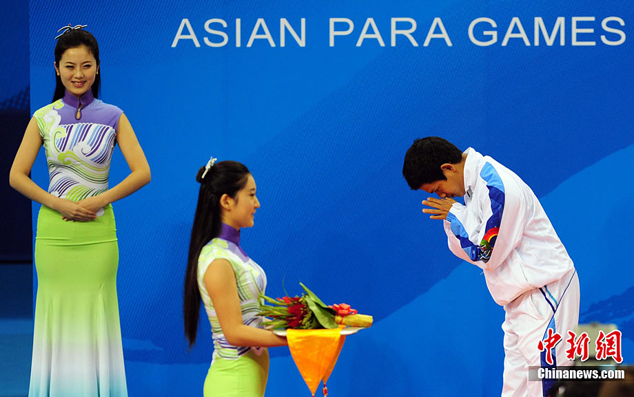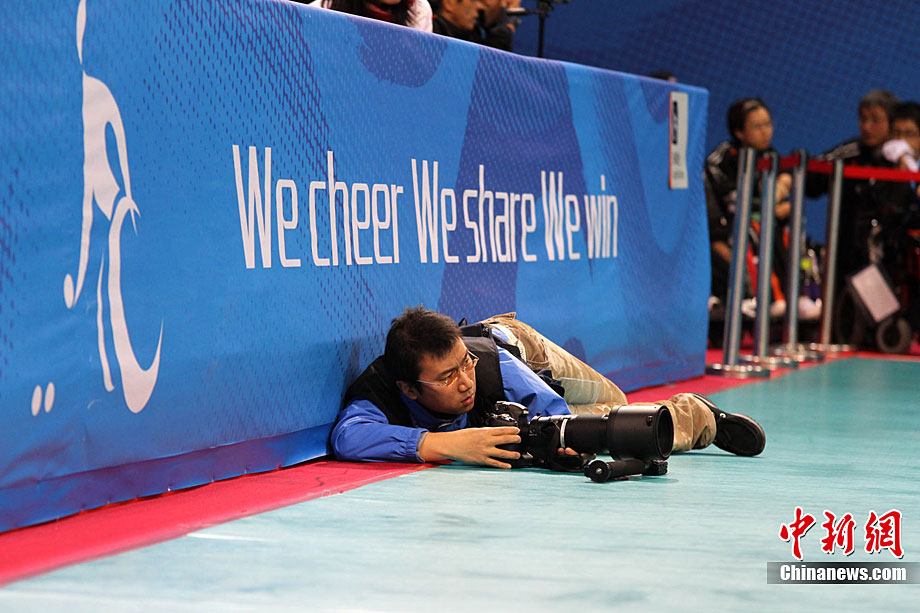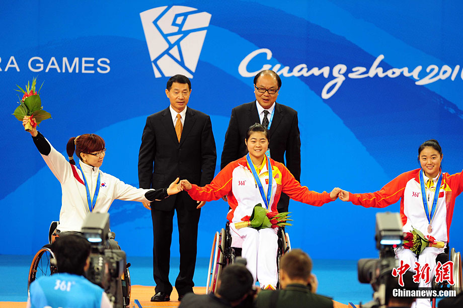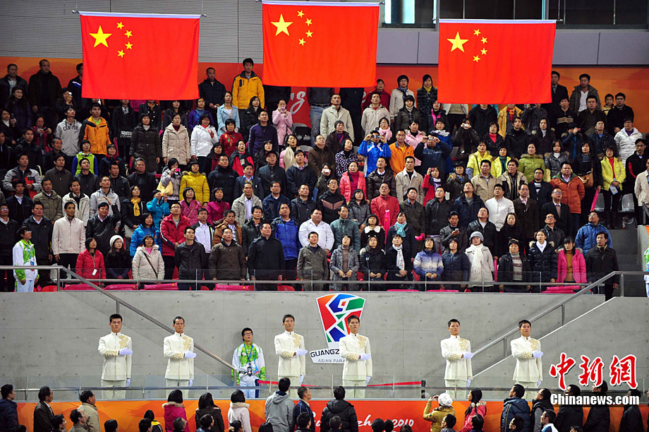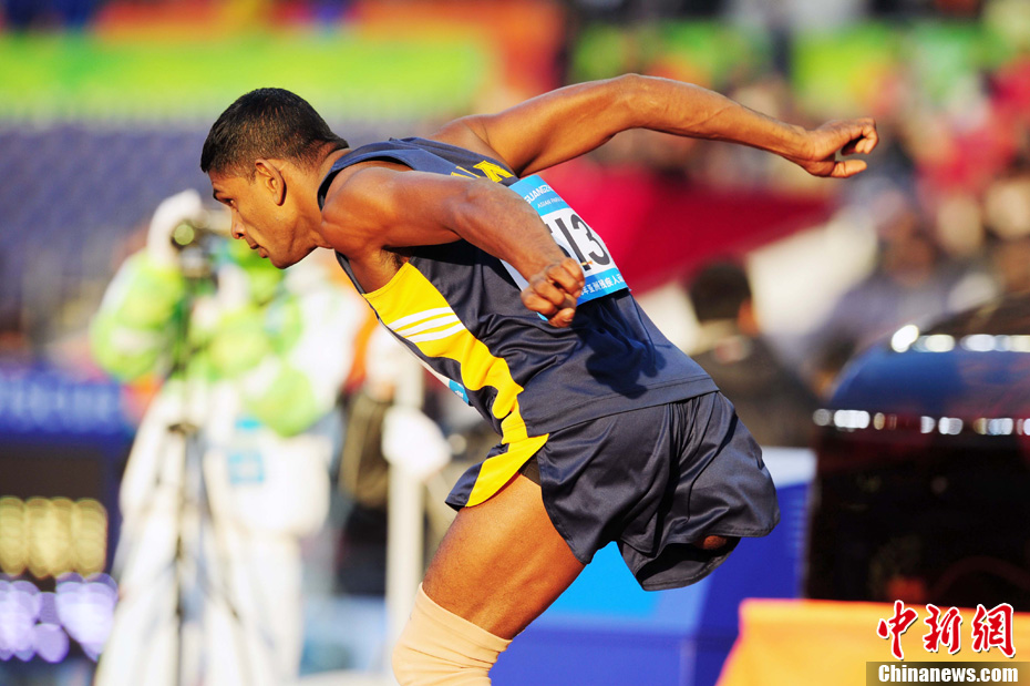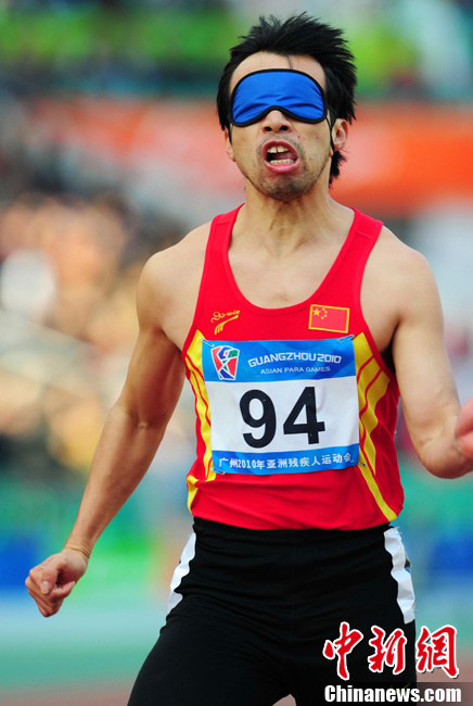 12月16日,廣州2010年亞殘運(yùn)會(huì)田徑賽進(jìn)入第3天,廣州遭遇寒流來(lái)襲氣溫降到最低2度,最高氣溫僅7度,亞洲選手在寒冷的氣候條件下參賽,錚錚鐵漢自我挑戰(zhàn)。中新社記者 陳文 攝