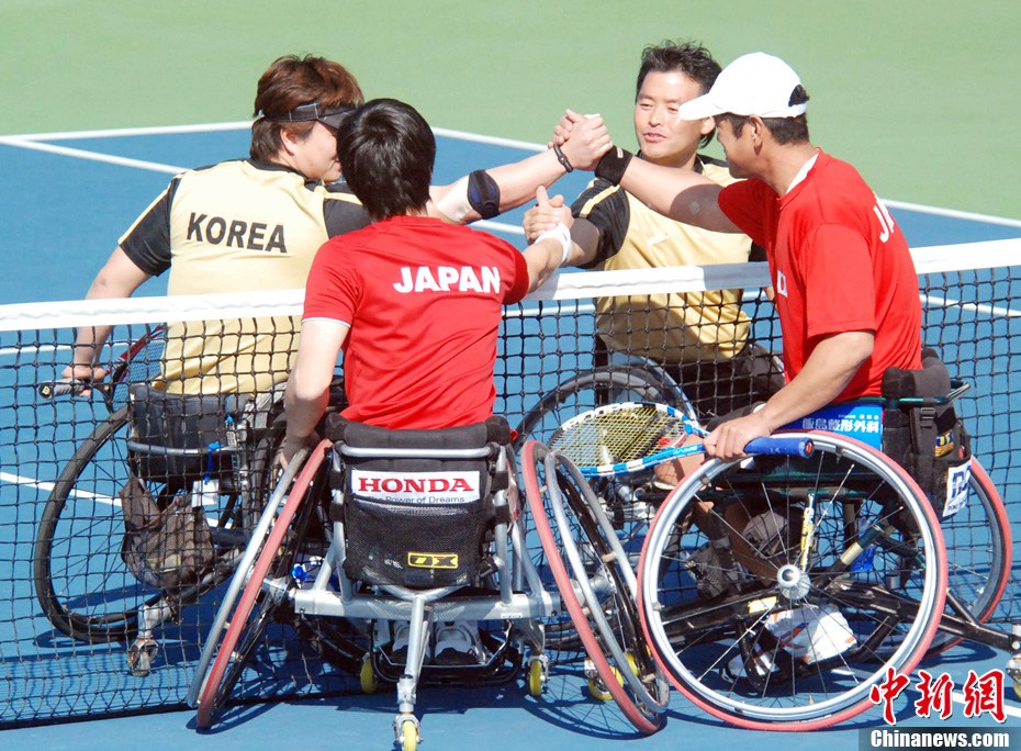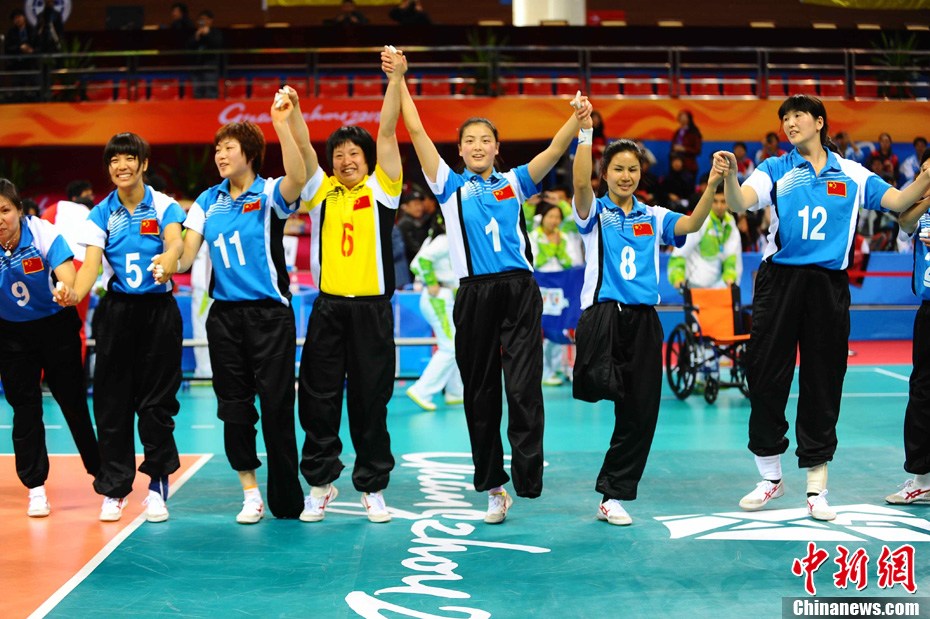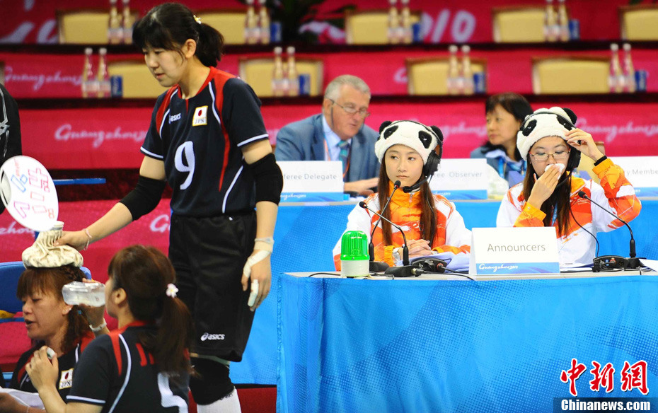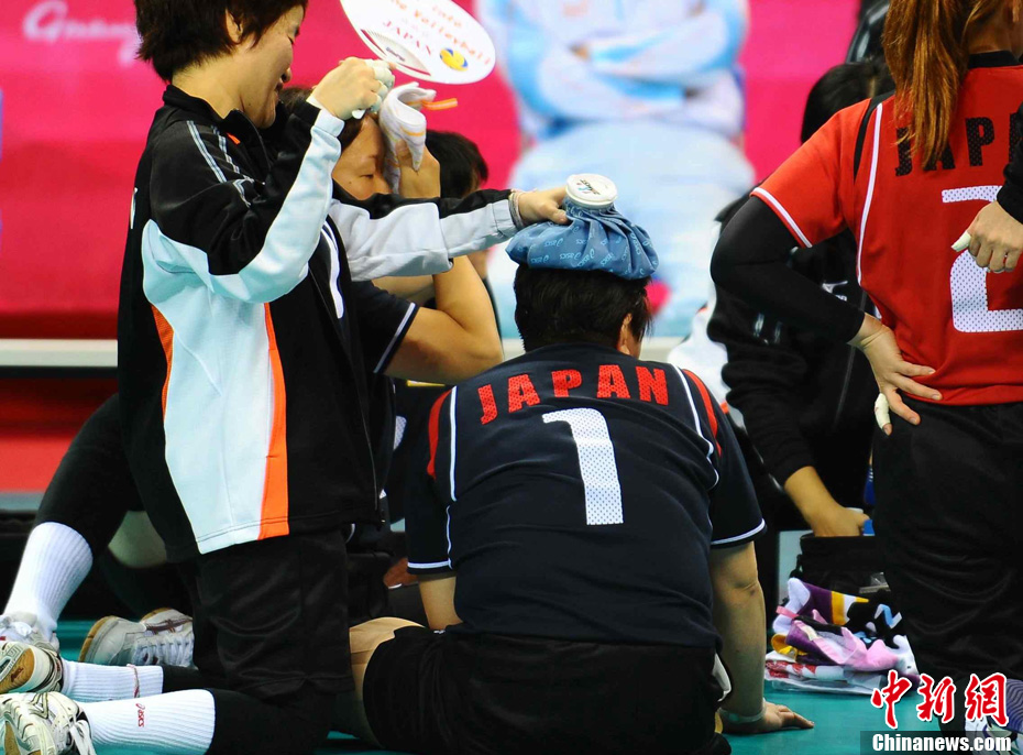 12月18日下午,日本女子坐式排球隊(duì)在決賽中1:3不敵中國(guó)隊(duì)。比賽暫停時(shí),日本隊(duì)替補(bǔ)球員為主力球員扇扇子。中新社記者 柯小軍 攝