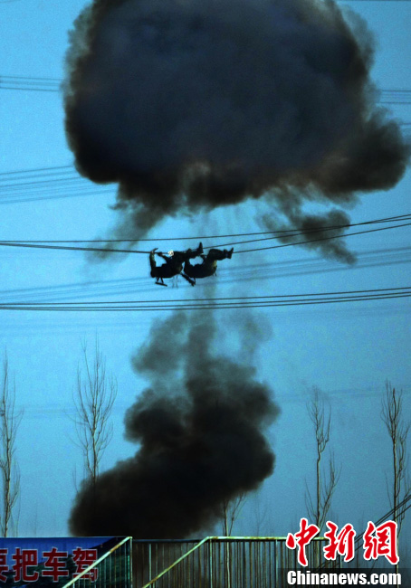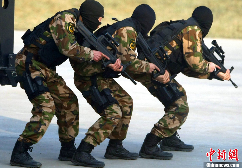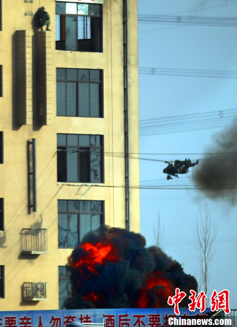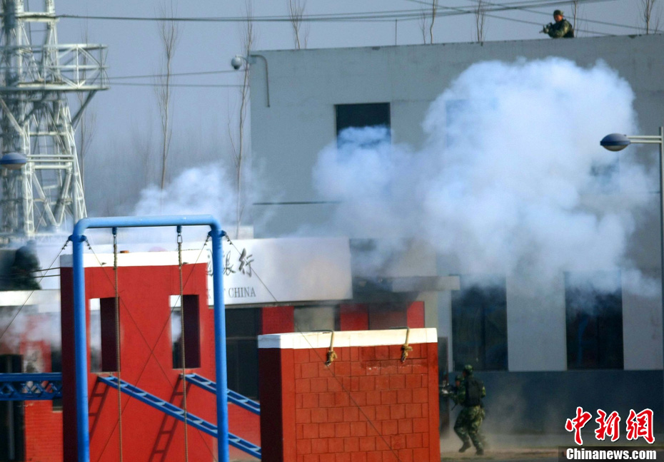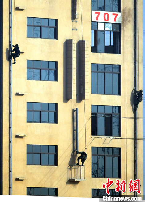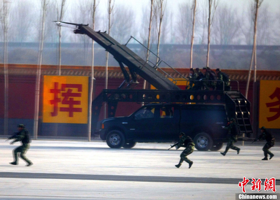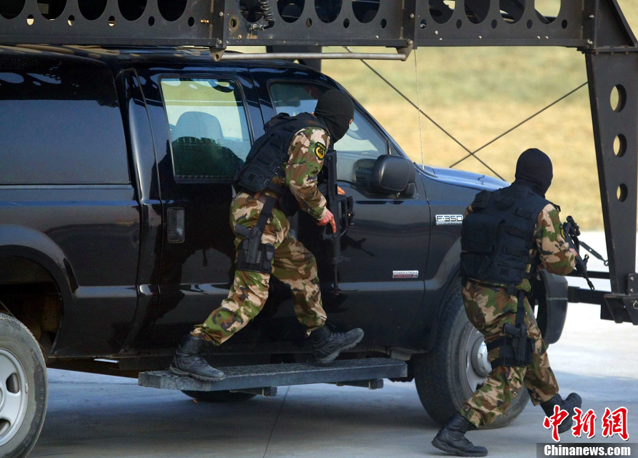 12月18日,中國武裝警察部隊武警特警學院特戰(zhàn)隊員在北京進行處置突發(fā)事件訓練。該所院校以訓練防暴和反劫機為主要科目,培養(yǎng)出的學員在國家安全保衛(wèi)工作中發(fā)揮著重要作用。中新社記者 宋吉河 攝