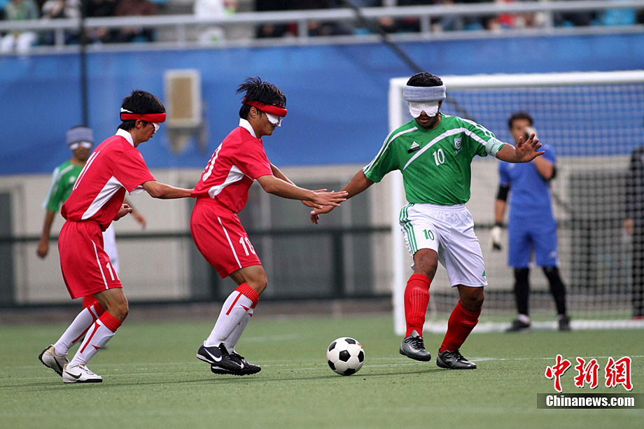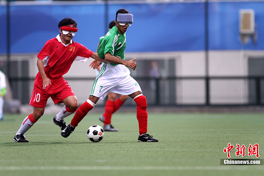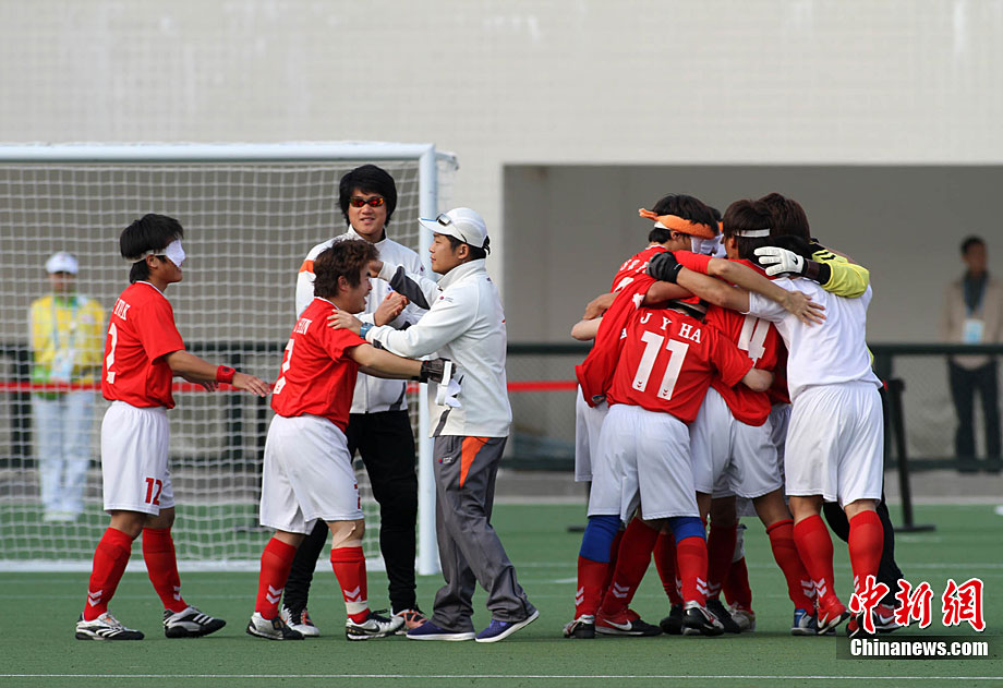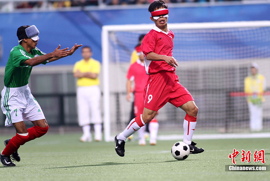 12月18日,亞殘運會廣州奧林匹克體育中心,在五人制(男子)足球決賽中,中國隊與伊朗隊的選手們充分發(fā)揮運動員的拼搏精神。經過激戰(zhàn),中國隊最后以1:0的成績戰(zhàn)勝伊朗獲得金牌。張美安 攝