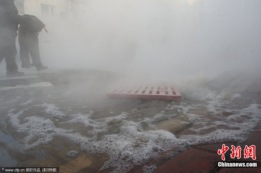 近日,黑龍江省哈爾濱市供熱管線接連爆裂。從12月14日至今,道里區(qū)、道外區(qū)約12萬戶居民供暖中斷。華能公司經(jīng)理趙世雷解釋說,造成這幾次大的停熱事故的主要原因是補償器破裂。18日夜間開始,哈爾濱市降下大雪,最低氣溫接近零下30攝氏度。小剛 攝 圖片來源:CFP視覺中國