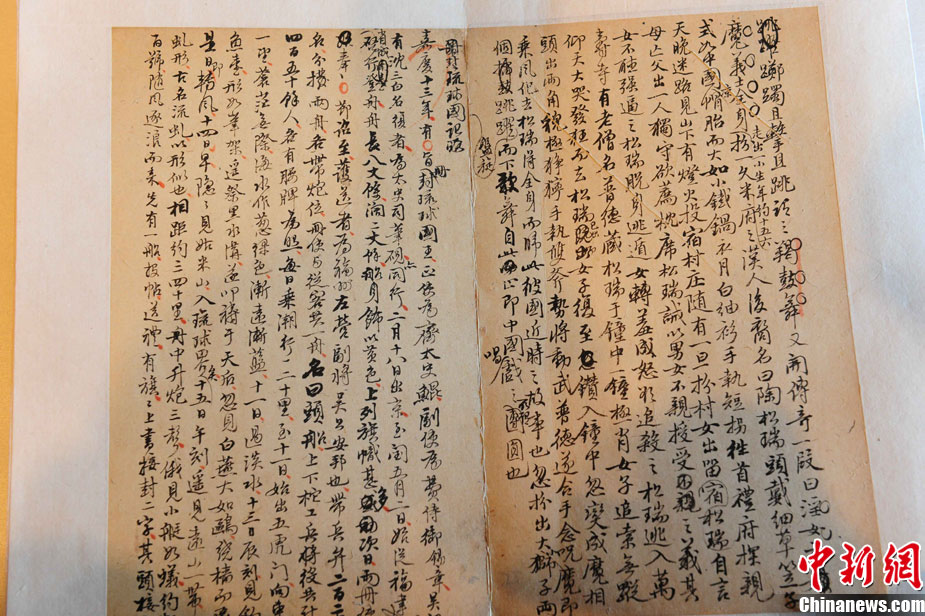 12月20日,國寶級釣魚島歷史文獻《(<浮生六記>卷五)冊封琉球國記略(<海國記>)》錢梅溪手抄本原件在北京開拍,這是開拍前展示的原件實物。 中新社記者 侯宇 攝