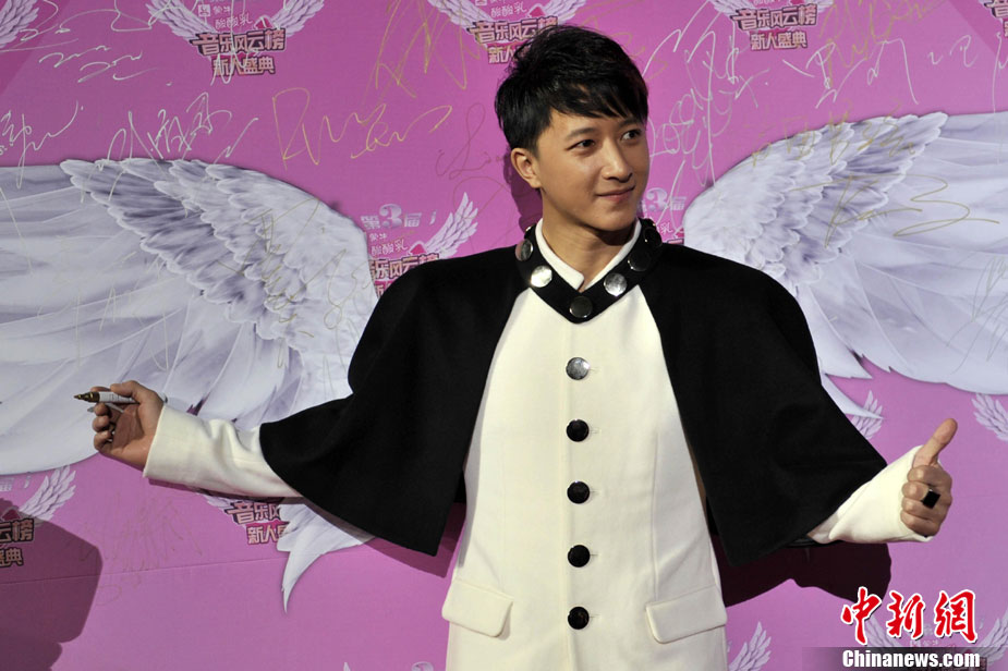 12月19日晚,第三屆音樂風云榜新人盛典在北京舉行,眾多明星包括韓庚、HEBE、郭書瑤、李霄云、江映蓉、劉惜君、譚詠麟、張智成等出席。此次新人盛典全面盤點了2010年華語樂壇崛起的新生代音樂力量,為這些樂壇的后起之秀加冕。圖為韓庚亮相紅毯。