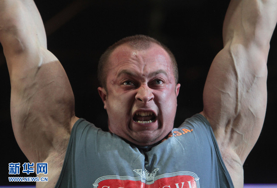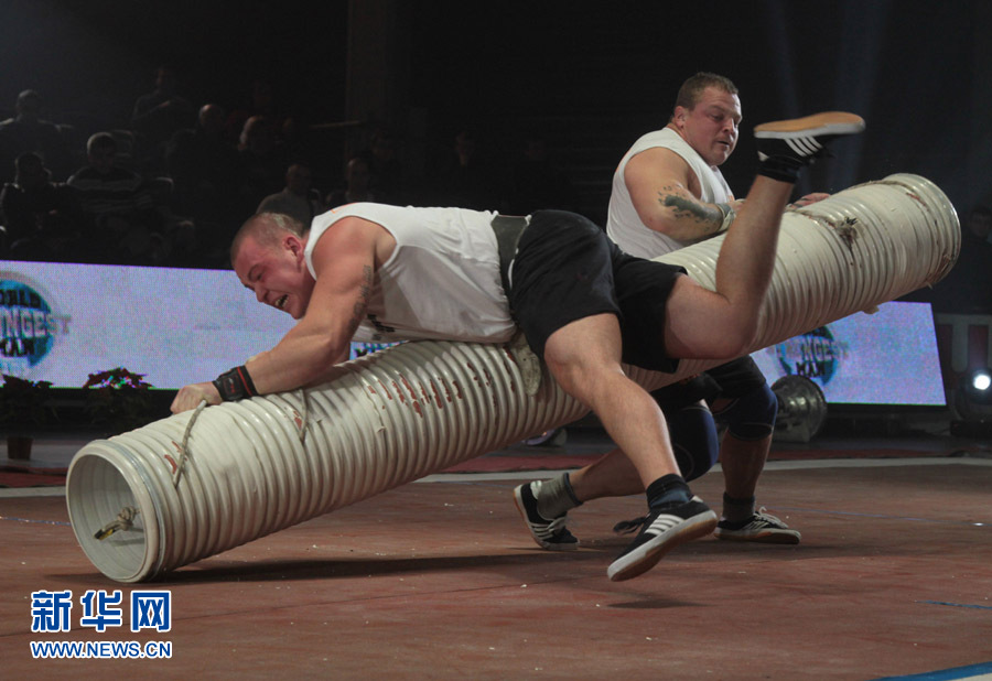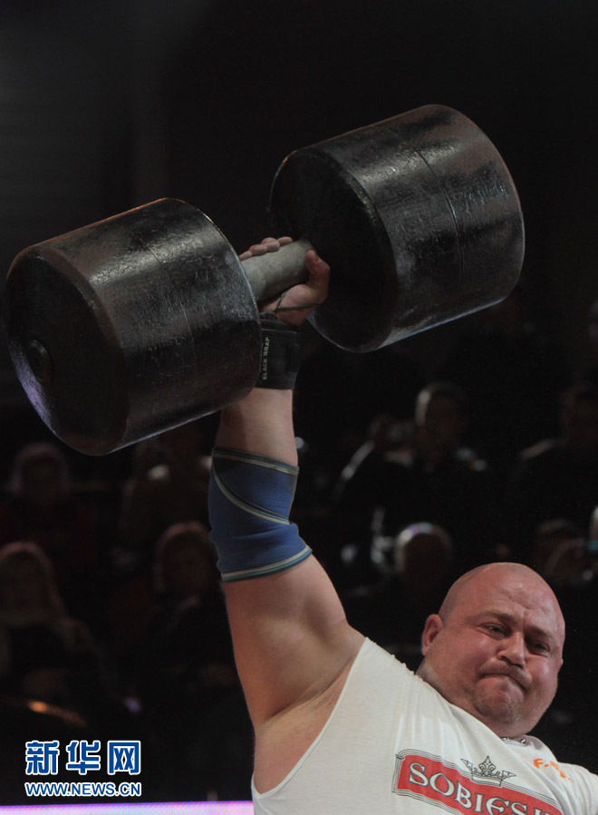 12月19日,參賽大力士在比賽中。當(dāng)日,烏克蘭首都基輔舉辦2010世界大力士比賽。該項(xiàng)比賽在體現(xiàn)選手力量的同時(shí),也融入了各國的民族風(fēng)情,很受當(dāng)?shù)赜^眾喜愛。斯塔拉斯堅(jiān)科 攝 (圖片來源:新華網(wǎng))