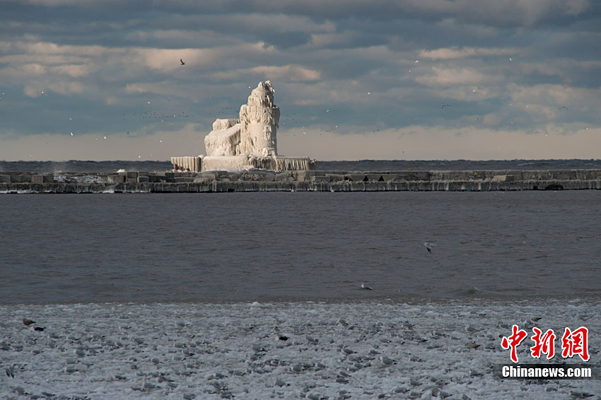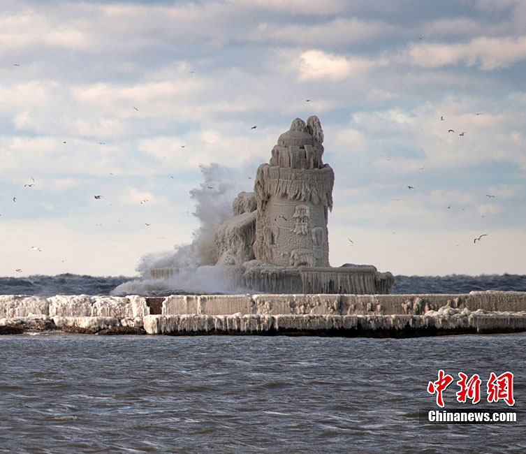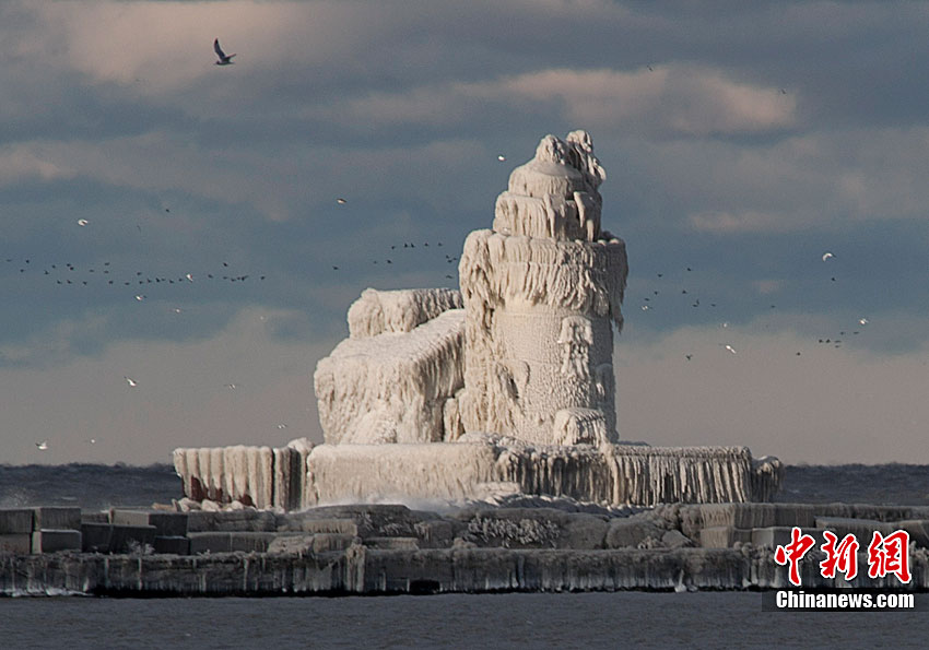 受暴風(fēng)雪影響,一座位于美國俄亥俄州伊利湖克利夫蘭港的燈塔近日完全被冰層覆蓋,從遠(yuǎn)處望去,仿佛一座冰雪雕刻的中世紀(jì)古堡。