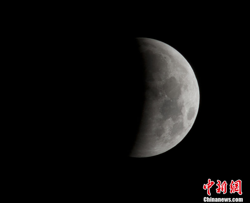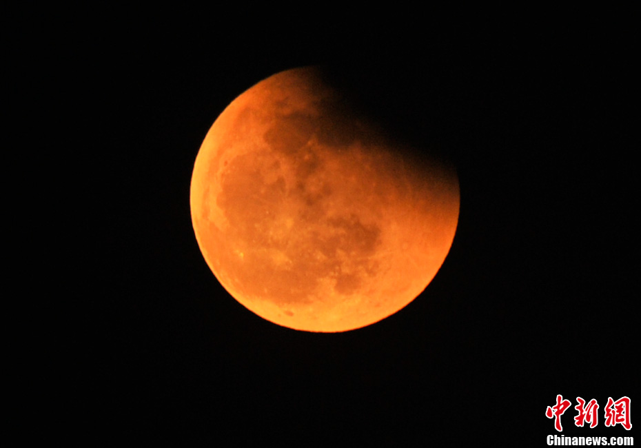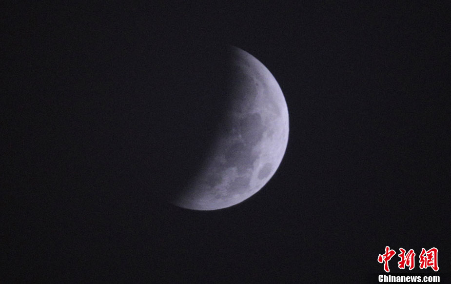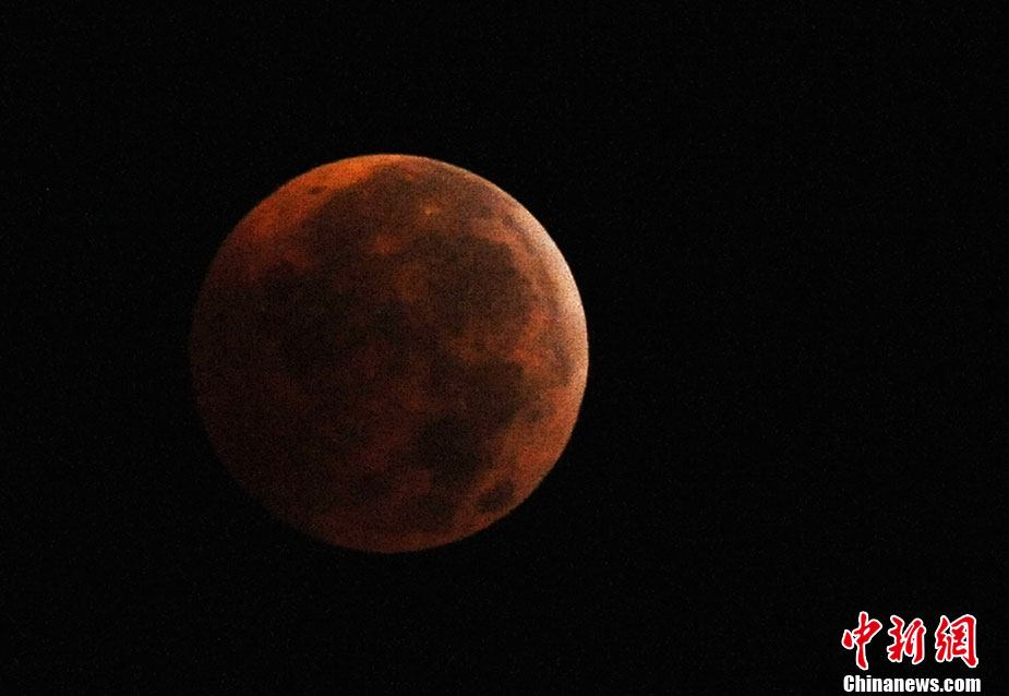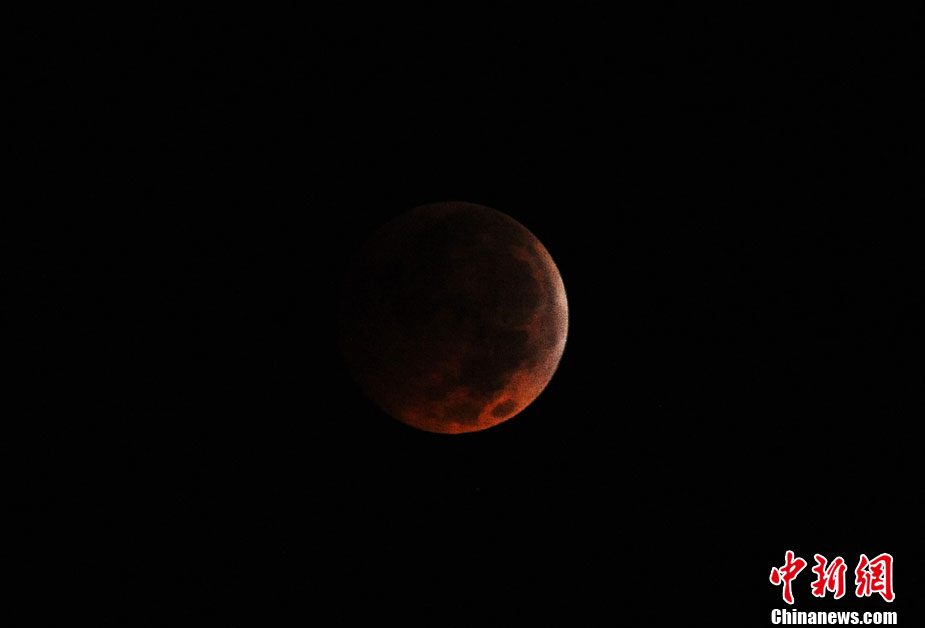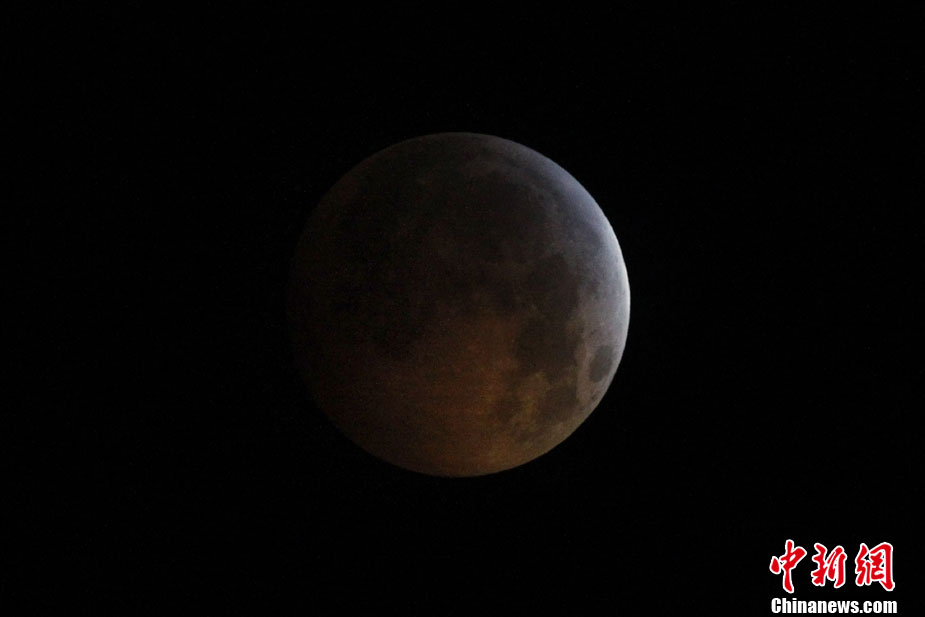 12月21日,精彩絕倫的月食天象現(xiàn)身天宇。月食分為半影月食、月偏食和月全食三種。月全食是地球運行到太陽與月球之間,當三者在一條直線時,地球影子將月球遮住的天文現(xiàn)象。圖為北京時間17:54分拍攝的月全食“復原”過程。復圓指月球與地球本影二次外切,月球離開地球本影,月偏食結束。中新社記者 金碩 攝