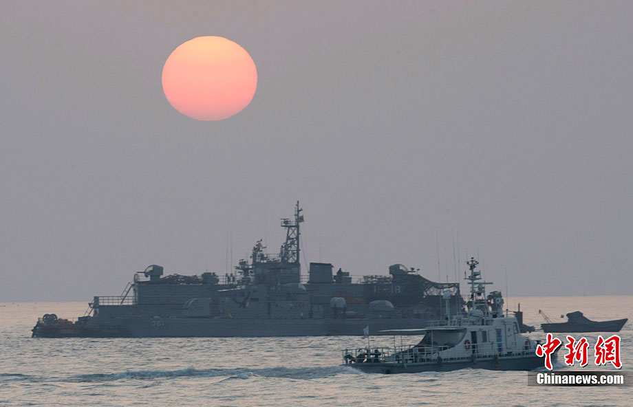 韓國國防部22日宣布,韓國陸軍和空軍23日將展開歷來最大規(guī)模的陸空聯(lián)合實彈射擊演訓。此外,韓國海軍22日起也在日本海展開4天的演習。圖為12月22日,兩艘韓國船只在延坪島附近海域行駛。