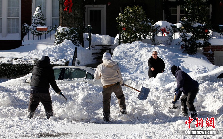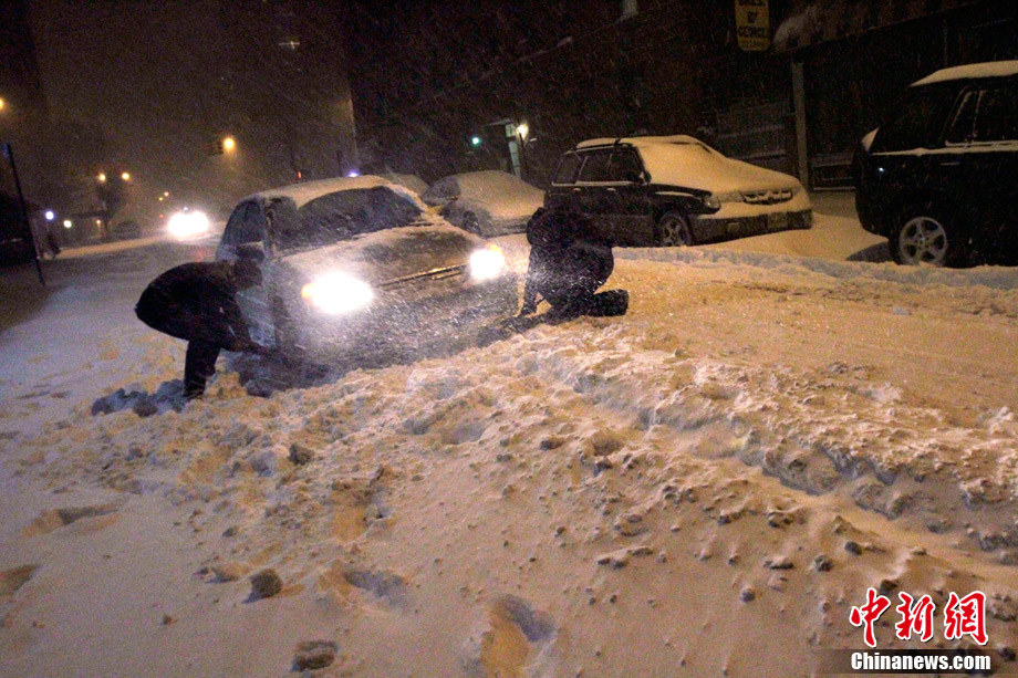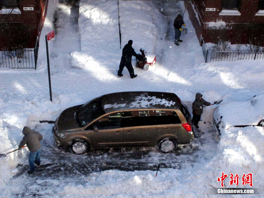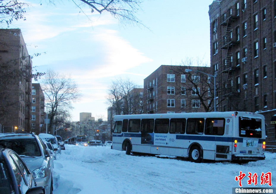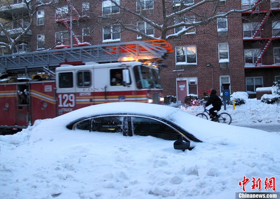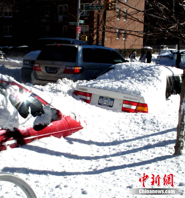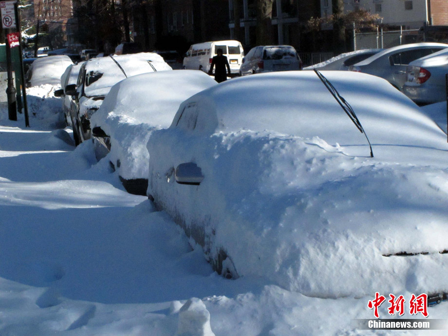 當?shù)貢r間12月27日,紐約整座城市被大雪深埋,政府雪后清理行動遲緩,導致公共交通設施幾乎全線受阻,引起民眾不滿。紐約市長布隆伯格在當日舉行的發(fā)布會上承認,年終將至,紐約市政府經(jīng)費捉襟見肘,因此“沒有額外的錢支付工人加班費”。這導致周末紐約暴雪過后街道清掃速度緩慢,交通大癱瘓延至星期一。圖為一輛停在路邊的汽車在大雪過后整整一天,仍然被深埋雪中。中新社發(fā) 魏晞 攝