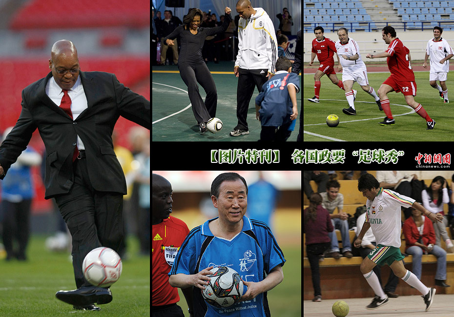 作為一項(xiàng)全球運(yùn)動,足球不單是運(yùn)動員的最愛,同時也受到多國政要的熱愛。傳統(tǒng)列強(qiáng)英法德西的政府首腦曾先后在不同場合大秀自己的球技,而作為2010年世界杯東道主南非的總統(tǒng)祖瑪也不例外。