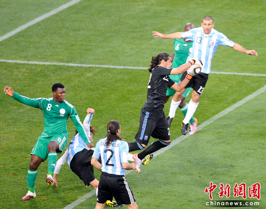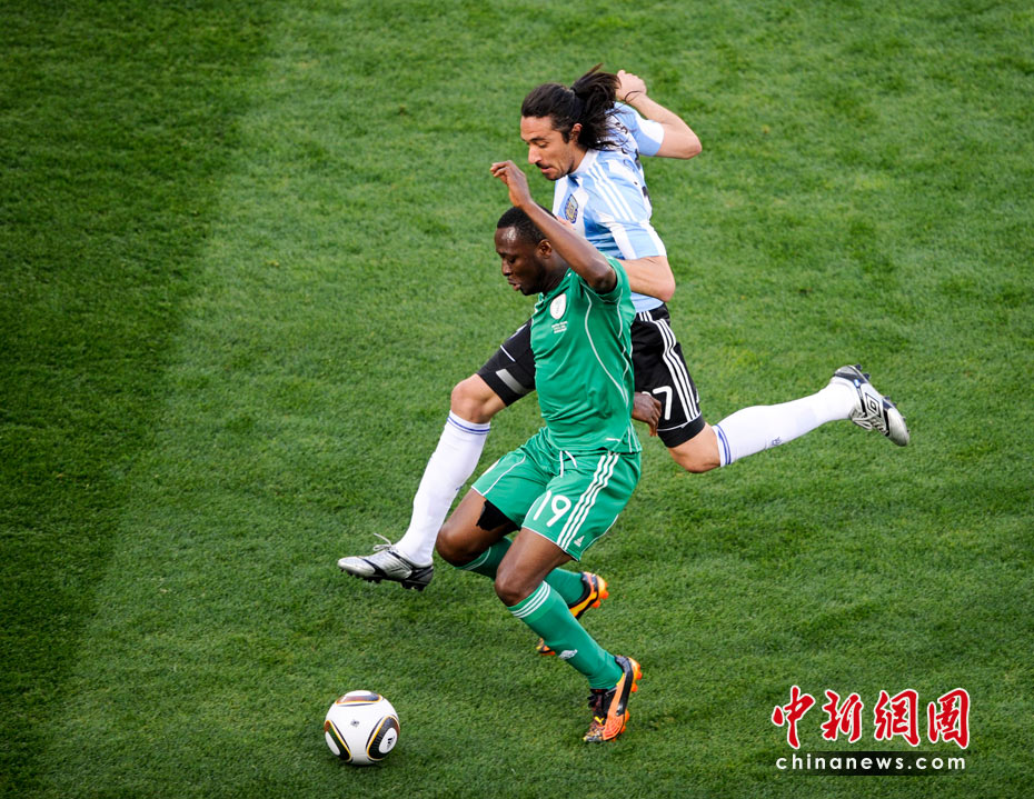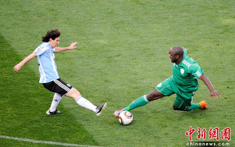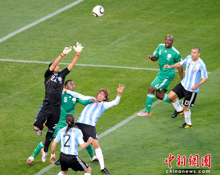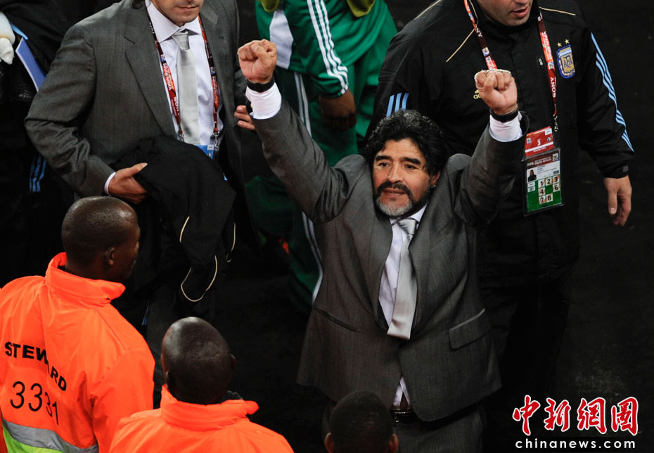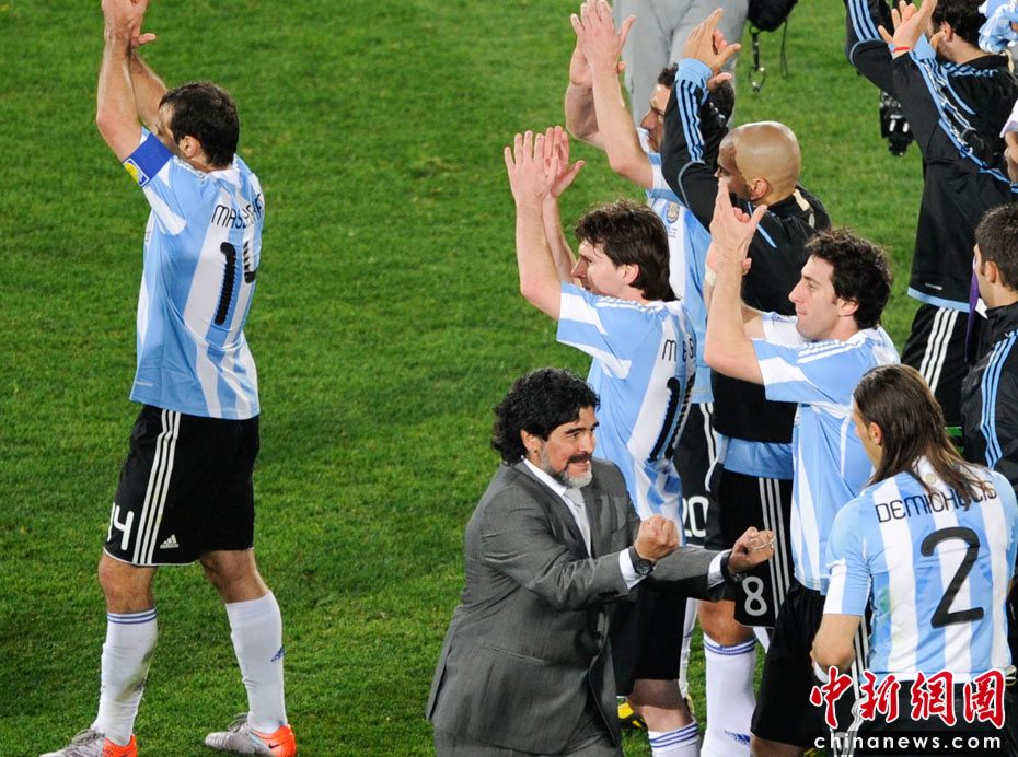 關(guān)注馬拉多納,期待梅西,阿根廷隊(duì)在南非世界杯上的首演沒有令等待他們的球迷失望,1比0擊敗非洲勁旅尼日利亞隊(duì),“潘帕斯雄鷹”再添奪冠底氣。中新社記者 廖攀 攝