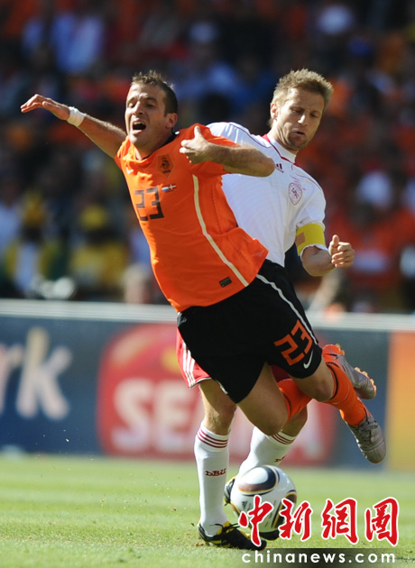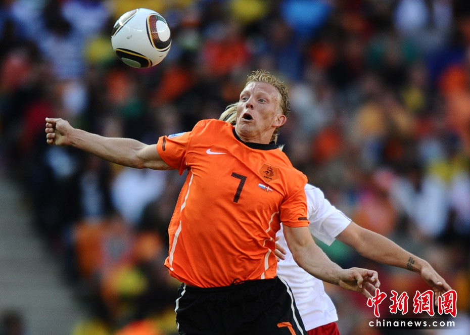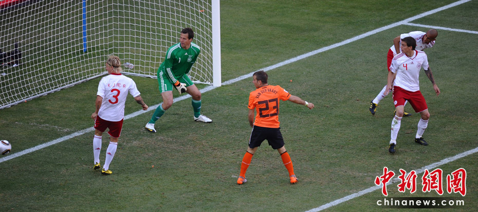 北京時(shí)間6月14日晚19點(diǎn)30分,南非世界杯E組第一輪正式在約翰內(nèi)斯堡的足球城體育場打響,由橙衣軍團(tuán)荷蘭隊(duì)對陣“北歐海盜”丹麥隊(duì)。下半場丹麥后衛(wèi)鮑爾森打進(jìn)本屆世界杯的第一粒烏龍球。84分鐘庫伊特門前撿漏得手,為荷蘭隊(duì)鎖定勝局,橙衣軍團(tuán)2-0戰(zhàn)勝丹麥。
