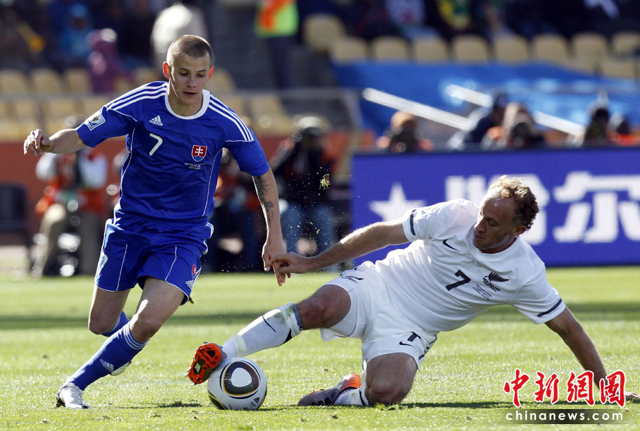 北京時間6月15日晚19時30分,2010南非世界杯F組首輪正式拉開戰(zhàn)幕。大洋洲代表新西蘭隊和歐洲新貴斯洛伐克隊在勒斯滕堡的皇家巴弗肯球場展開對決。斯洛伐克先打破僵局,但新西蘭前鋒里德最后傷停補時3分鐘時進球,兩隊1-1戰(zhàn)平。