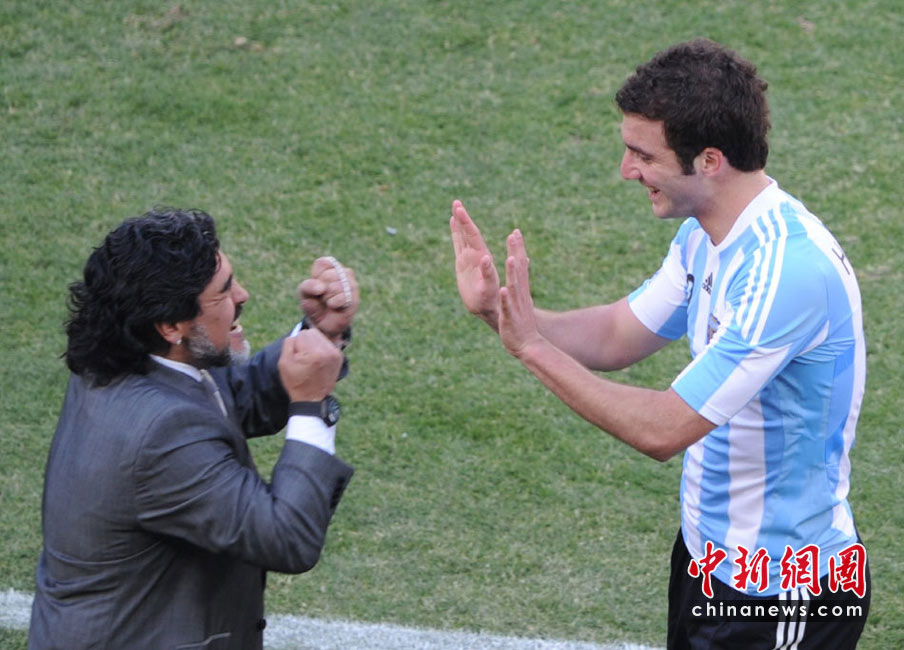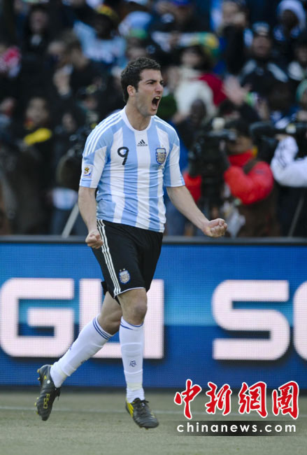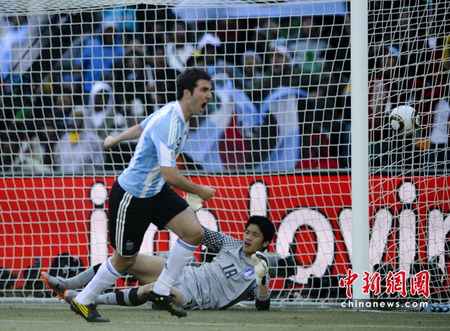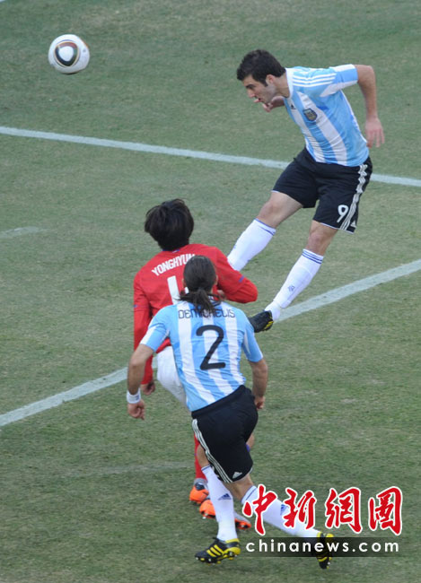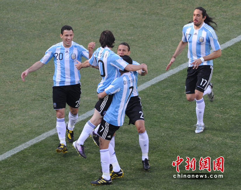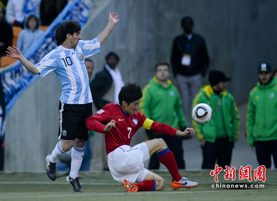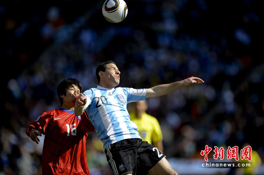 北京時(shí)間6月17日19點(diǎn)30分,2010年南非世界杯B組第二輪的首場(chǎng)比賽打響,由兩屆世界杯冠軍得主阿根廷隊(duì)迎戰(zhàn)亞洲“太極虎”韓國(guó)隊(duì)。中新社記者 廖攀 攝
