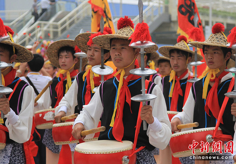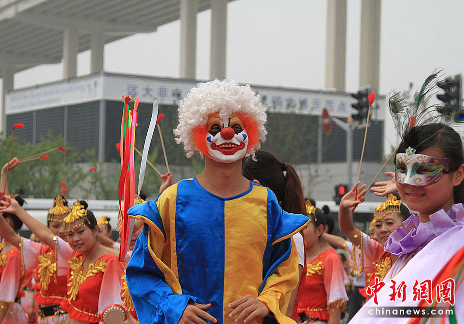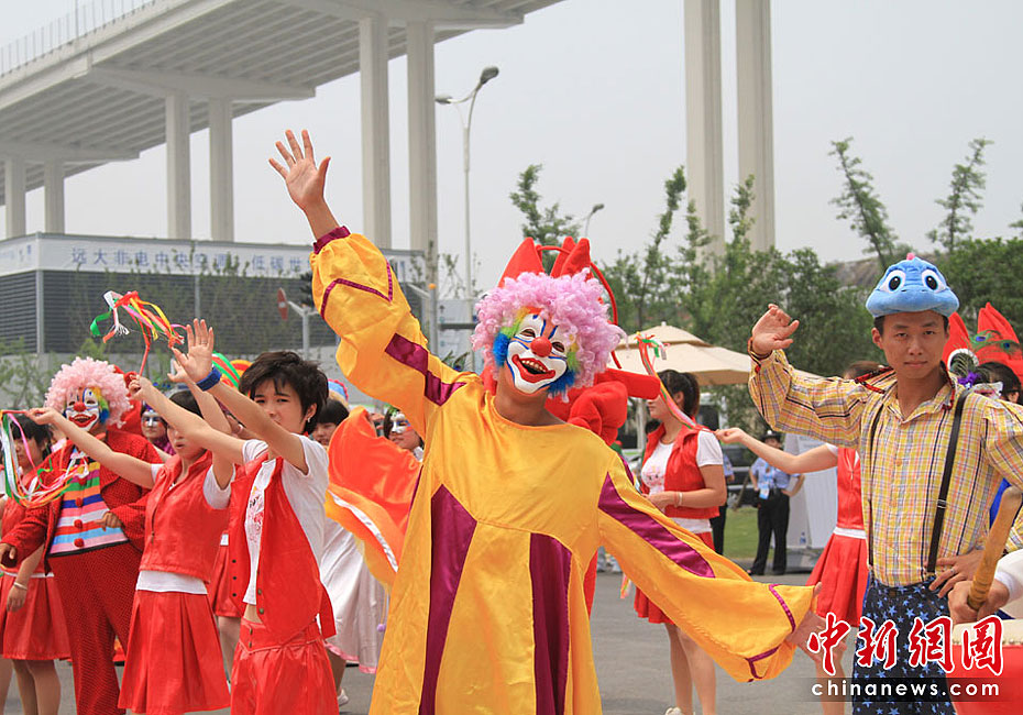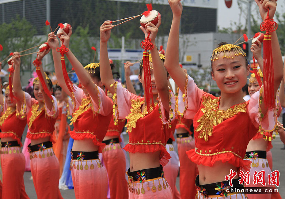 6月23日,上海世博會安徽活動周開幕,以安徽地方戲劇、特色文化為元素的“安徽風情,歡樂世博”大巡游同日在上海世博園啟動。巡游隊伍包括蚌埠花鼓燈、蕪湖方特卡通、徽班、鳳陽花鼓、休寧得勝鼓和4輛彩車。中新社記者 殷春永 攝