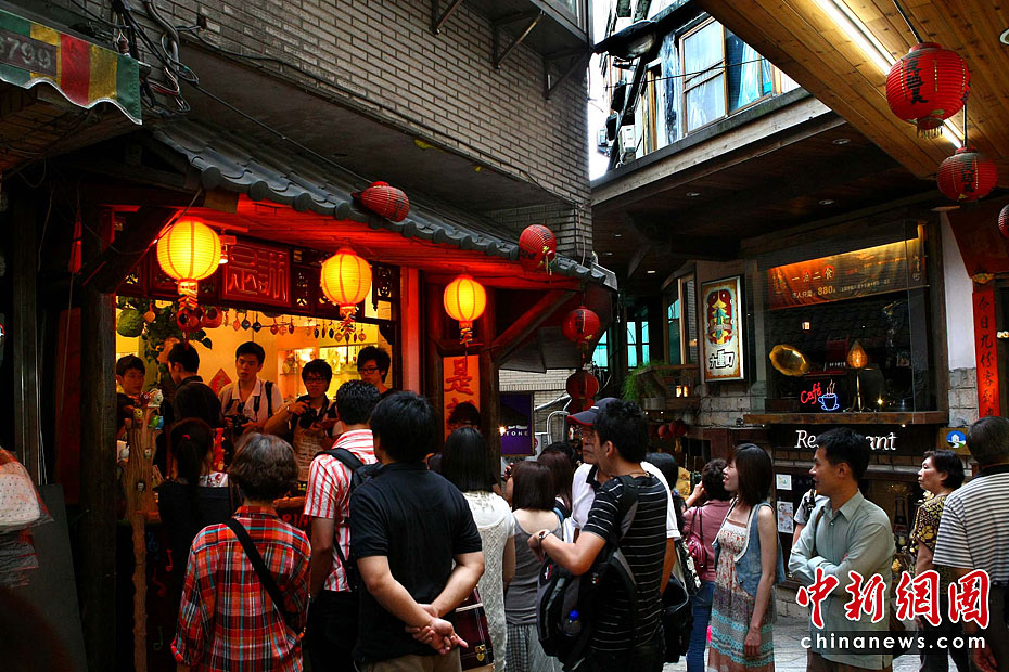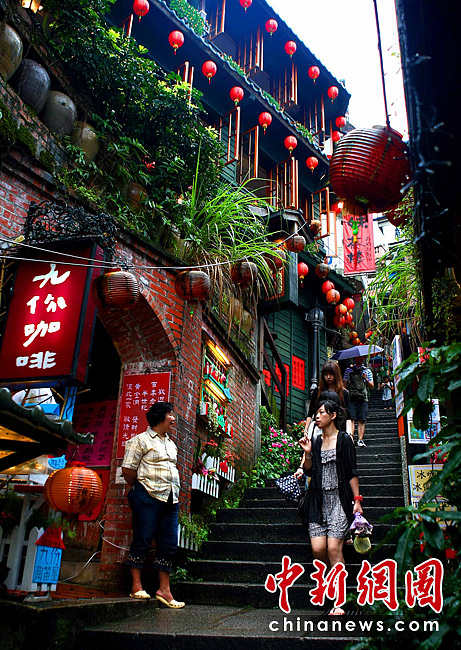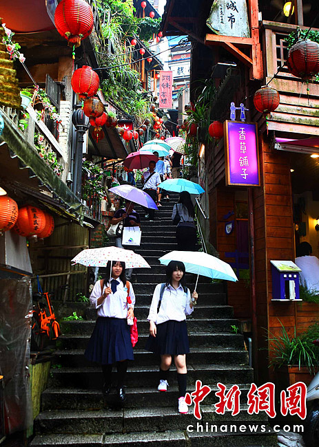 6月下旬的臺北九份陰雨連綿,據(jù)來過這里的人說,能趕上這種天氣是一種福氣。九份位于臺灣臺北縣瑞芳鎮(zhèn),早期因為盛產(chǎn)金礦而興盛,礦藏挖掘殆盡后從而沒落。1990年后,因電影《悲情城市》在九份取景,九份的獨特舊式建筑、坡地以及風(fēng)情,透過此片而吸引國內(nèi)外的注目,也為此小鎮(zhèn)重新帶來生機,目前已經(jīng)成為一個很受歡迎的觀光景點。目前當(dāng)?shù)芈糜尾块T正在為游客提供更好的服務(wù)工作。中新社記者 宋吉河 攝