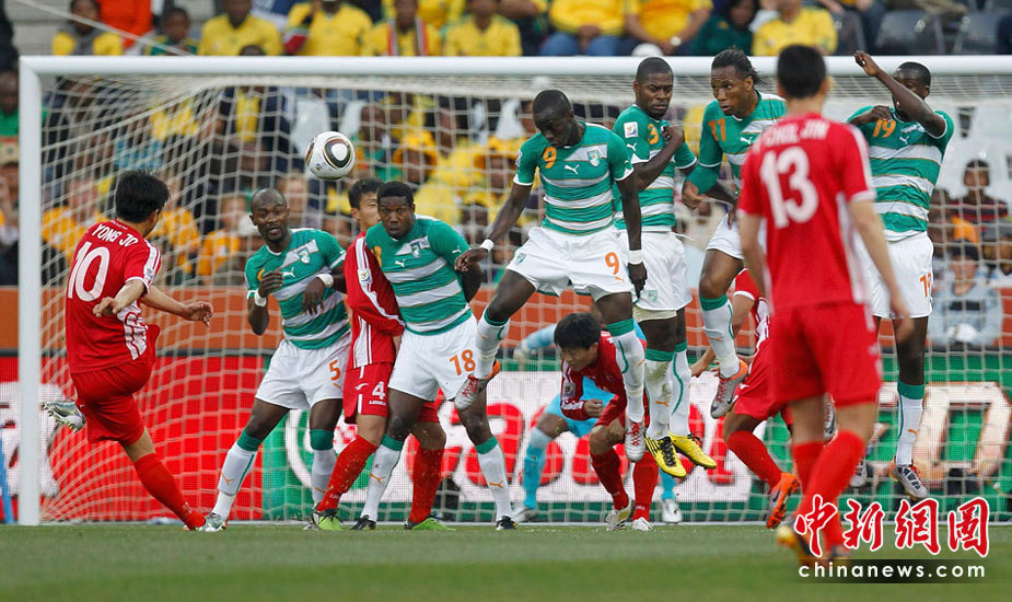 北京時(shí)間25日22時(shí),朝鮮隊(duì)迎來(lái)自己在南非世界杯的絕唱:在G組的比賽中迎戰(zhàn)科特迪瓦。最終,科特迪瓦隊(duì)3比0擊敗朝鮮隊(duì)。本屆世界杯之旅,朝鮮隊(duì)三戰(zhàn)盡墨,進(jìn)1球失12球,小組墊底。