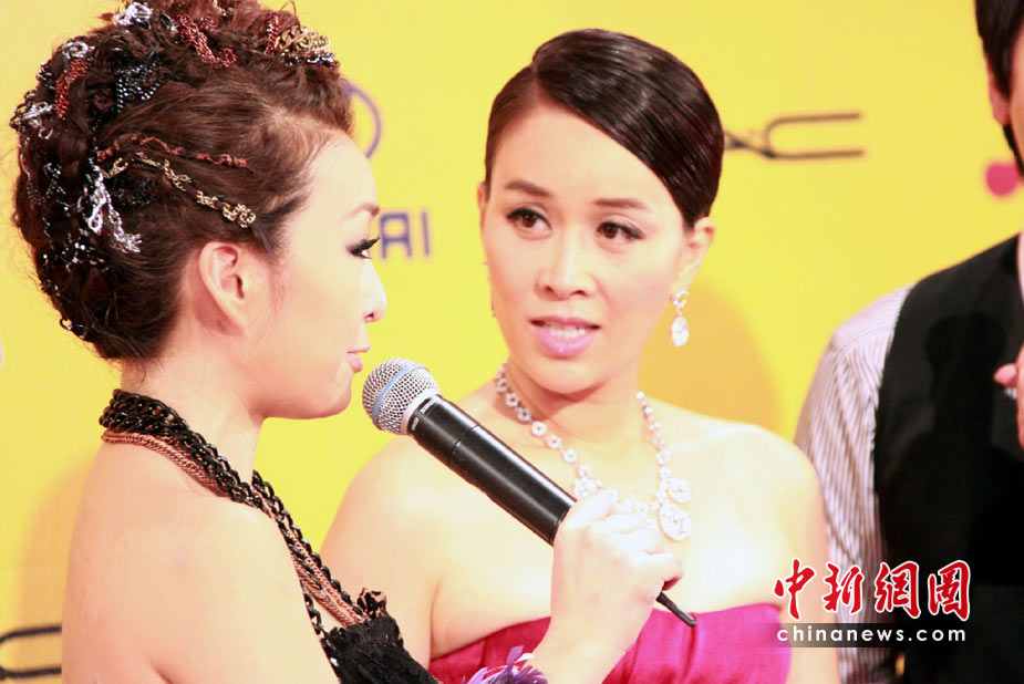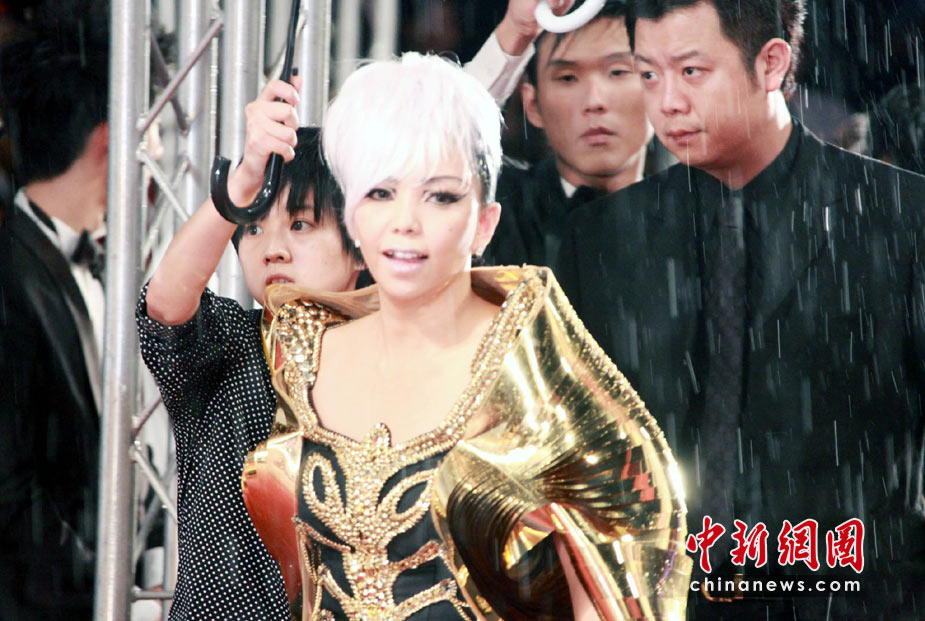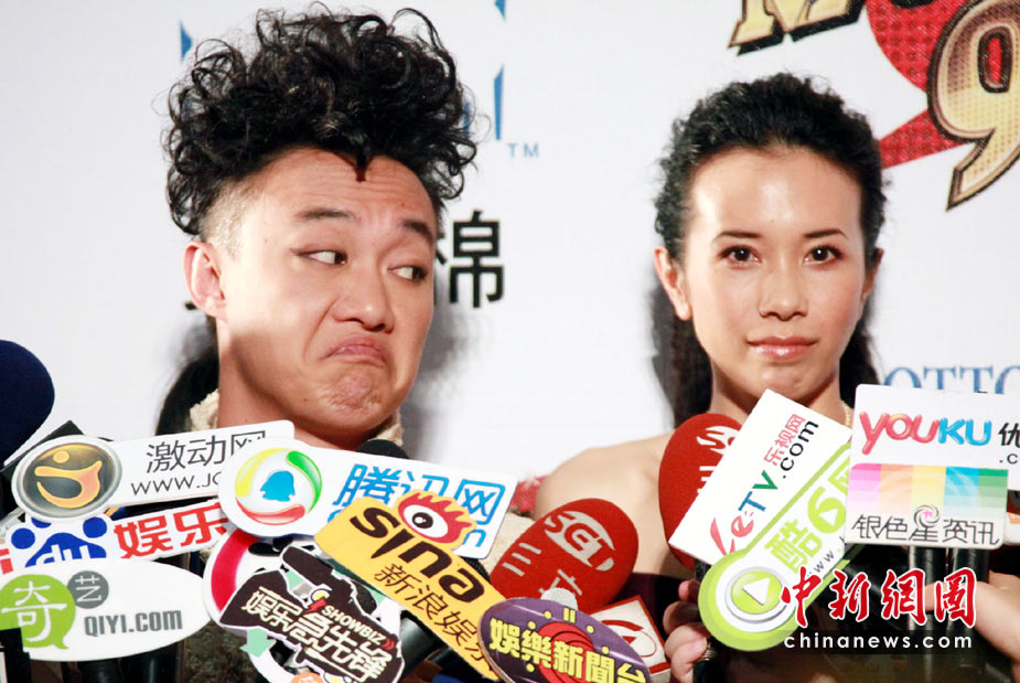 6月26日,臺灣第21屆金曲獎流行音樂類頒獎典禮星光大道在臺北小巨蛋舉行。圖為陳奕迅、莫文蔚聯(lián)袂出席,陳奕迅可愛扮鬼臉。中新社記者 黃少華攝