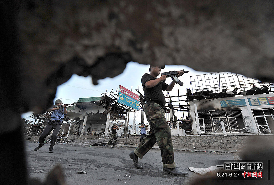 吉爾吉斯斯坦軍警在該國城市奧什的街上巡邏。在當(dāng)?shù)卣l(fā)起的搜捕行動(dòng)中至少有兩人喪生、23人受傷。