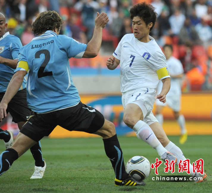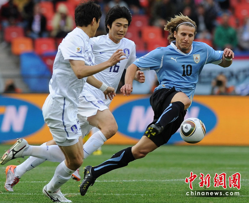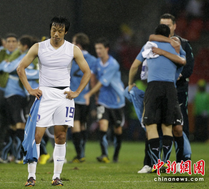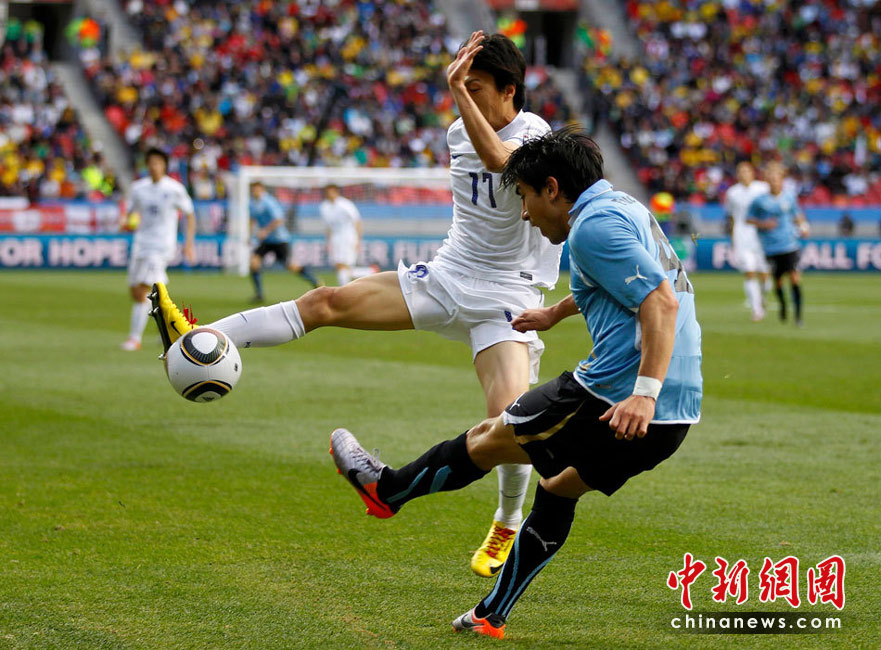 在26日晚進(jìn)行的一場(chǎng)世界杯1/8決賽中,韓國(guó)隊(duì)在伊麗莎白港的納爾遜·曼德拉球場(chǎng)迎戰(zhàn)墨西哥。烏拉圭隊(duì)?wèi){借蘇亞雷斯在上下半場(chǎng)的兩粒入球,以2-1擊敗韓國(guó)隊(duì),率先晉級(jí)八強(qiáng)。
