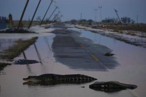 颶風(fēng)過后鱷魚現(xiàn)身路邊