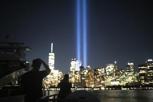 雙子塔光柱點(diǎn)亮紐約夜空