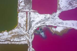 航拍雪后七彩鹽湖