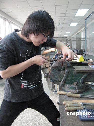 10月24日,首屆兩岸青年學生職業(yè)技能競賽在天津舉行。經過激烈角逐,臺灣新竹高級工業(yè)職業(yè)學校彭捷獲得中職組鉗工操作技能比賽第一名。中新社發(fā) 田齊 攝