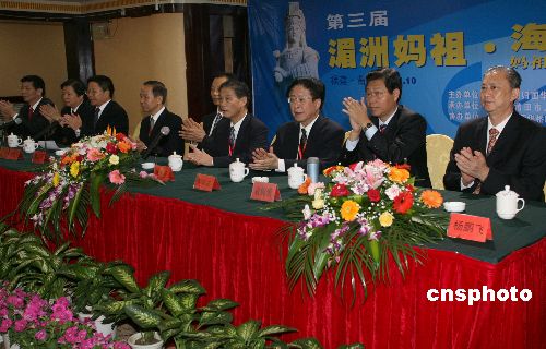 第三屆湄洲媽祖·海峽論壇10月30日在媽祖故鄉(xiāng)福建莆田開幕。全國政協(xié)副主席張克輝發(fā)來賀信,中國僑聯(lián)主席林兆樞出席開幕式。來自中國、菲律賓、日本、澳大利亞、新西蘭、馬來西亞、印尼、新加坡、巴拉圭、南非、荷蘭、臺灣、香港等13個國家和地區(qū)的一百多名僑領(lǐng)以及媽祖文化專家、學者,將圍繞“媽祖文化與華人華僑”主題進行為期兩天的研討交流。出席開幕式的還有福建省政協(xié)副主席、統(tǒng)戰(zhàn)部長張燮飛等。中新社發(fā) 張勤 攝