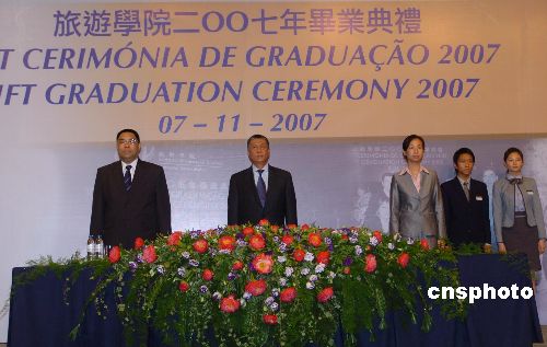 十一月七日,澳門特首何厚鏵、社會文化司司長崔世安在旅游塔主禮澳門旅游學(xué)院2007年畢業(yè)典禮。中新社發(fā) 史利 攝