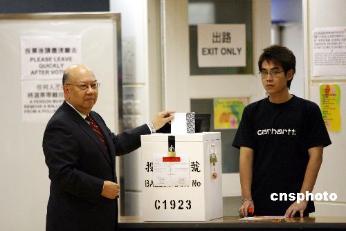 十一月十四日,香港選舉管理委員會主席彭鍵基法官巡視設(shè)于九龍公園體育館的模擬投票站。香港區(qū)議會選舉將于十一月十八日舉行,全港共設(shè)立了四個模擬投票站,讓選民預先熟習有關(guān)的投票程序。中新社發(fā) 武仲林 攝