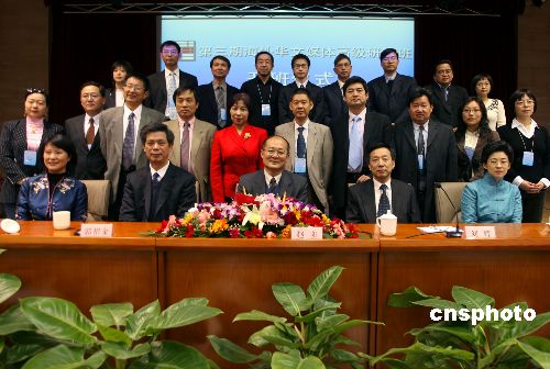 十一月二十六日,“第三期海外華文媒體高級研修班”在北京正式開班。本期研修班共邀請來自15個國家22家海外華文媒體的負責人參加。圖為國務(wù)院僑辦副主任趙陽(前中)、中國新聞社社長郭招金(前左二)等與研修班全體成員合影留念。中新社發(fā) 張勤 攝