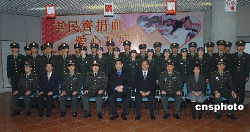 十二月六日,一百名中國(guó)人民解放軍駐澳門(mén)部隊(duì)指戰(zhàn)員在澳門(mén)綜藝館參加義務(wù)獻(xiàn)血活動(dòng)。這是解放軍駐澳部隊(duì)指戰(zhàn)員的第八次義務(wù)獻(xiàn)血。圖為澳門(mén)社會(huì)文化司司長(zhǎng)崔世安與獻(xiàn)血的指戰(zhàn)員合影。中新社發(fā) 史利 攝