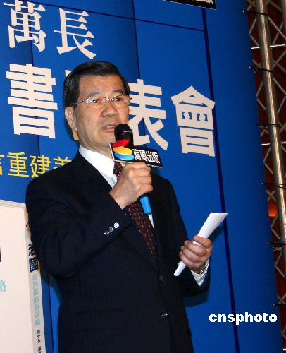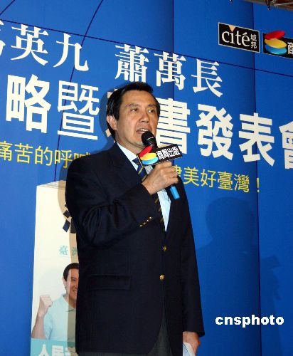 二十日,國(guó)民黨二00八參選人馬英九及其搭檔蕭萬(wàn)長(zhǎng)聯(lián)合出版的新書在臺(tái)北正式發(fā)表,該書以兩人對(duì)談的方式,詳述他們“拼經(jīng)濟(jì),救民生”治理臺(tái)灣的具體政策。中新社發(fā) 陳國(guó)華 攝