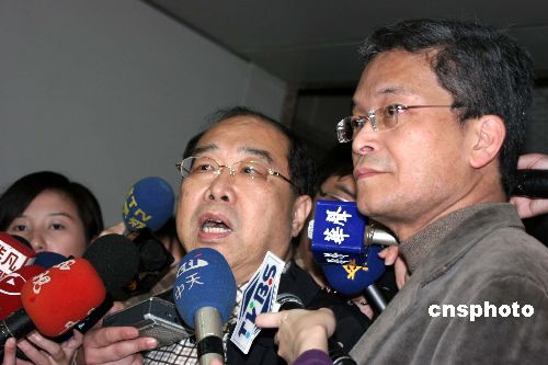 十二月二十六日,為配合臺灣當(dāng)局的一階段領(lǐng)投票規(guī)劃,“中央選舉委員會”在臺北舉行會議,以六比三通過修改各級選委會組織規(guī)程。圖為國民黨、親民黨推薦的“中選會”委員劉光華、趙叔鍵(右)接受記者采訪,反對行政干預(yù),提岀一階段、兩階段折衷方案。中新社發(fā) 董會峰 攝