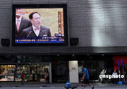 香港鬧市屏幕直播曾蔭權(quán)會(huì)見(jiàn)新聞界相關(guān)報(bào)道