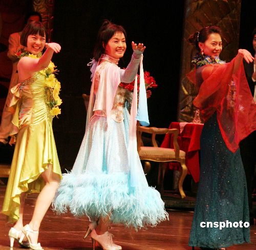 一月三日晚,大陸知名影視演員劉曉慶(中)在臺(tái)北國父紀(jì)念館彩排舞臺(tái)劇《金大班的最后一夜》,由她領(lǐng)銜主演的《金大班的最后一夜》四日起將在臺(tái)北公演六場(chǎng)。這是該劇在上海、北京、南京及新加坡等地巡演數(shù)十場(chǎng)并廣受好評(píng)后,首次來臺(tái)灣演出。中新社發(fā) 孫自法 攝