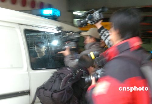 新聞媒體在澳門初級(jí)法院門口追拍押解歐文龍親屬的囚車。