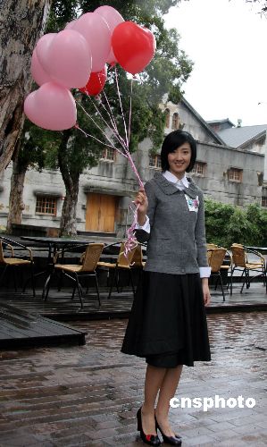 一月二十六日,臺灣年輕藝人桂綸鎂在臺北街頭拍攝廣告。微風細雨、老樹桌椅、美女氣球,別具風情。中新社發(fā) 孫自法 攝