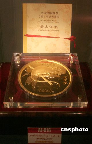 一月二十七日,由中國臺北奧委會、臺灣大洋金銀幣有限公司主辦的“第二十九屆北京奧運會金銀紀(jì)念幣慈善拍賣會在臺北誠品信義店舉行。圖為在拍賣會上拍賣,由中國人民銀行發(fā)行,全球發(fā)行總量只有十八枚的十公斤重鼠年紀(jì)念金幣,拍賣底價新臺幣一千二百二十萬元。中新社發(fā) 陳立宇 攝