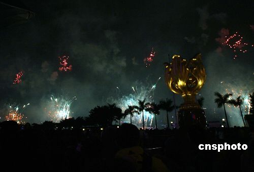 二月八日晚,香港舉行煙花匯演慶新春,警方預(yù)計四十多萬人在維多利亞港兩岸觀看。據(jù)悉,此次鼠年賀歲煙花耗資七百萬元精心打造,共發(fā)放十幕逾四萬發(fā)煙火,總長度達(dá)一公里。圖為寓意國家富強,人民生活富足的“8”圖案。中新社發(fā) 武仲林 攝