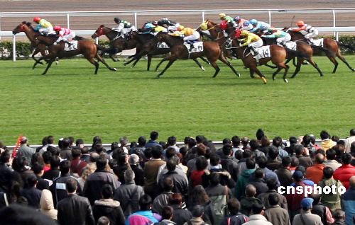 二月九日,香港沙田馬場舉行新春賽馬,吸引大批市民入場。中新社發(fā) 武仲林 攝