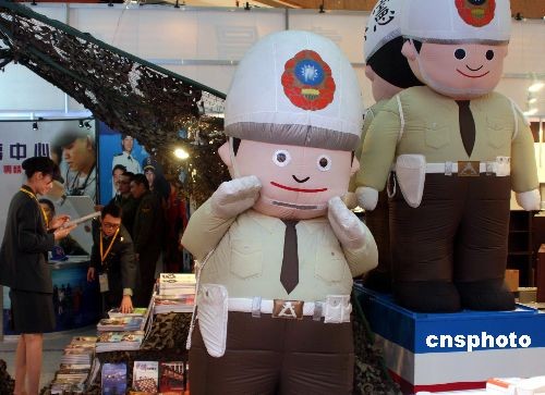2月中旬,臺北國際書展今年首設(shè)“軍事圖書區(qū)”,二十五家軍事出版社及臺灣軍事管理部門參展。由“阿兵哥”扮裝的“憲兵娃娃”吸引民眾駐足,意外成為書展熱點。中新社發(fā) 耿軍 攝