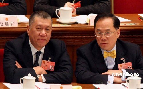 3月5日上午,十一屆全國(guó)人大一次會(huì)議在北京開(kāi)幕。香港特首曾蔭權(quán)和澳門特首何厚鏵在主席臺(tái)上。中新社發(fā) 張宇 攝